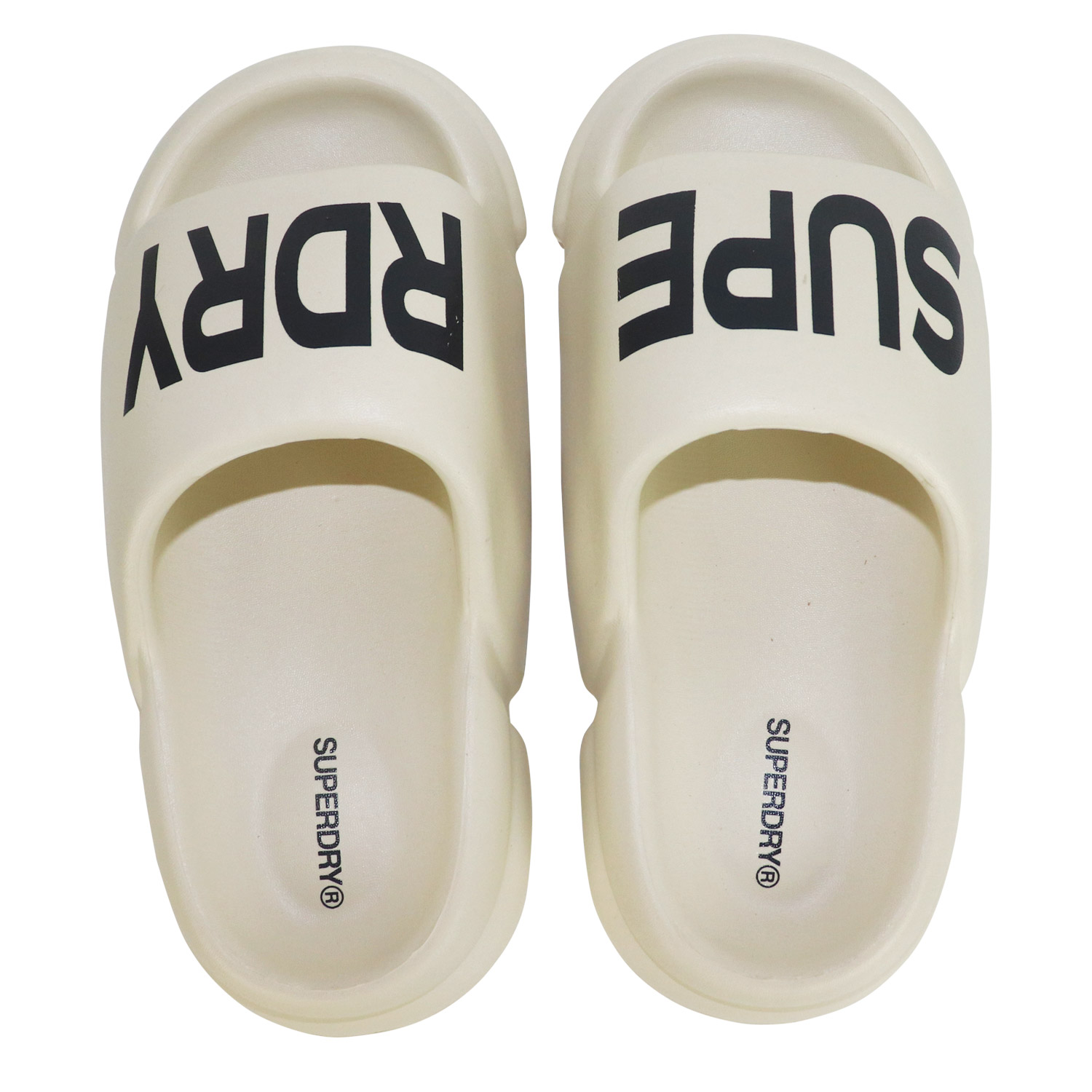 Superdry γυναικείο slide, σε μπεζ χρώμα, κατασκευασμένο από οικολογικό δέρμα, με ανατομικό πάτο. Ύψος τακουνιού 4εκ.
