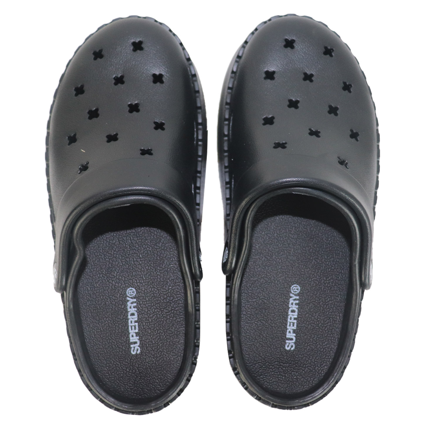 Superdry γυναικείο slide, σε μαύρο χρώμα, κατασκευασμένο από οικολογικό δέρμα, με ανατομικό πάτο. Ύψος τακουνιού 6εκ.
