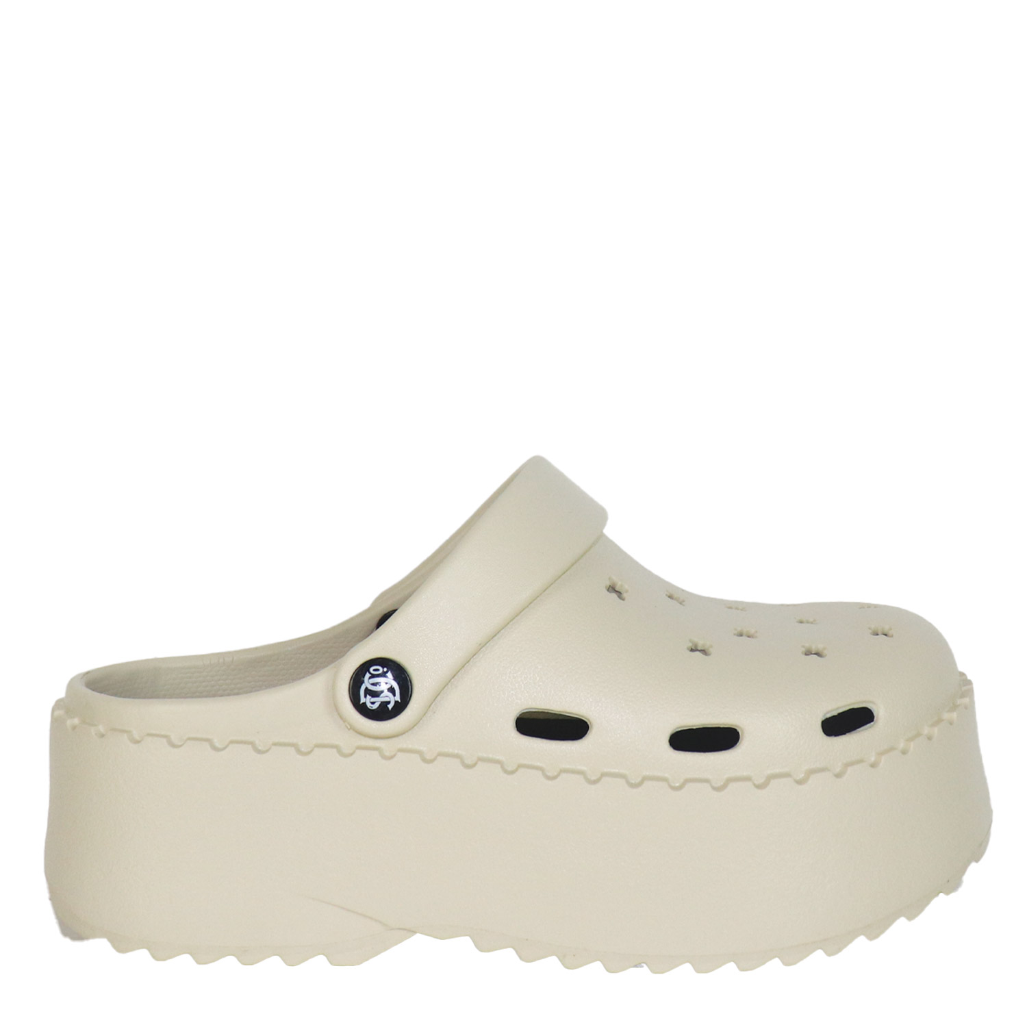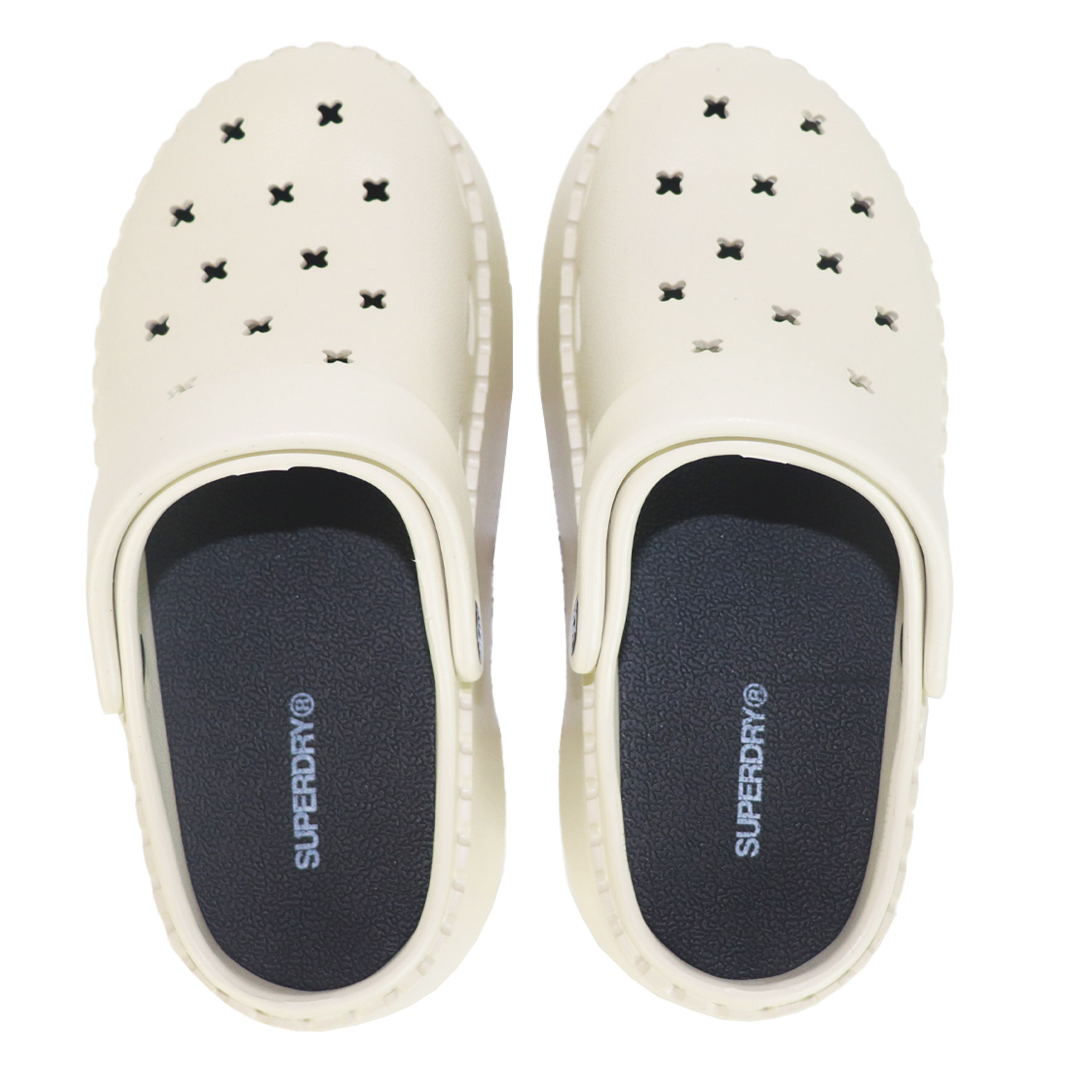 Superdry γυναικείο slide, σε μπεζ χρώμα, κατασκευασμένο από οικολογικό δέρμα, με ανατομικό πάτο. Ύψος τακουνιού 6εκ.