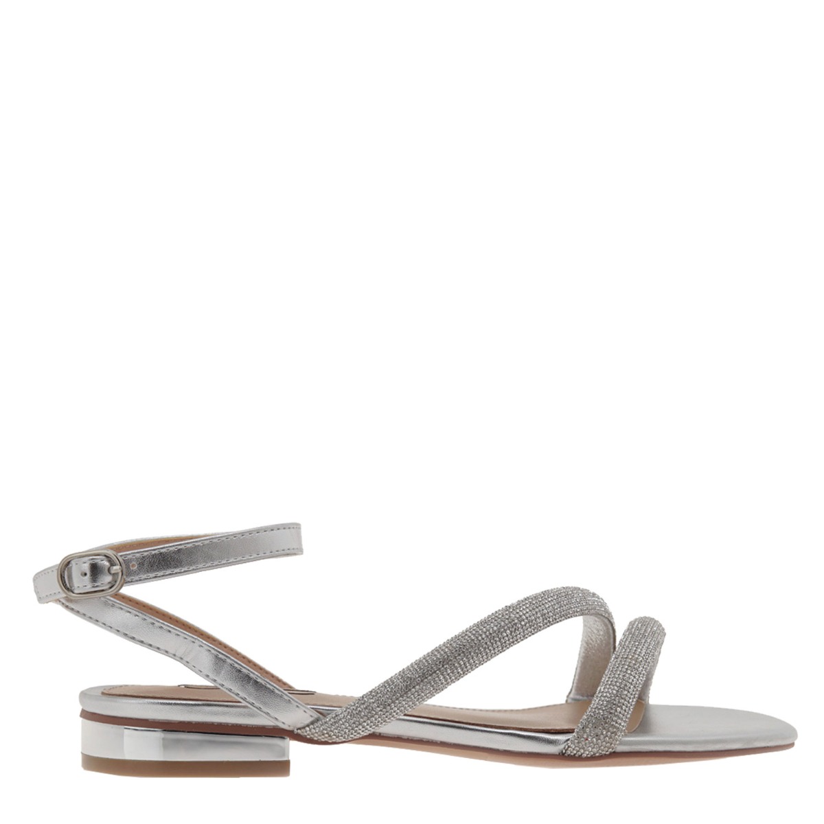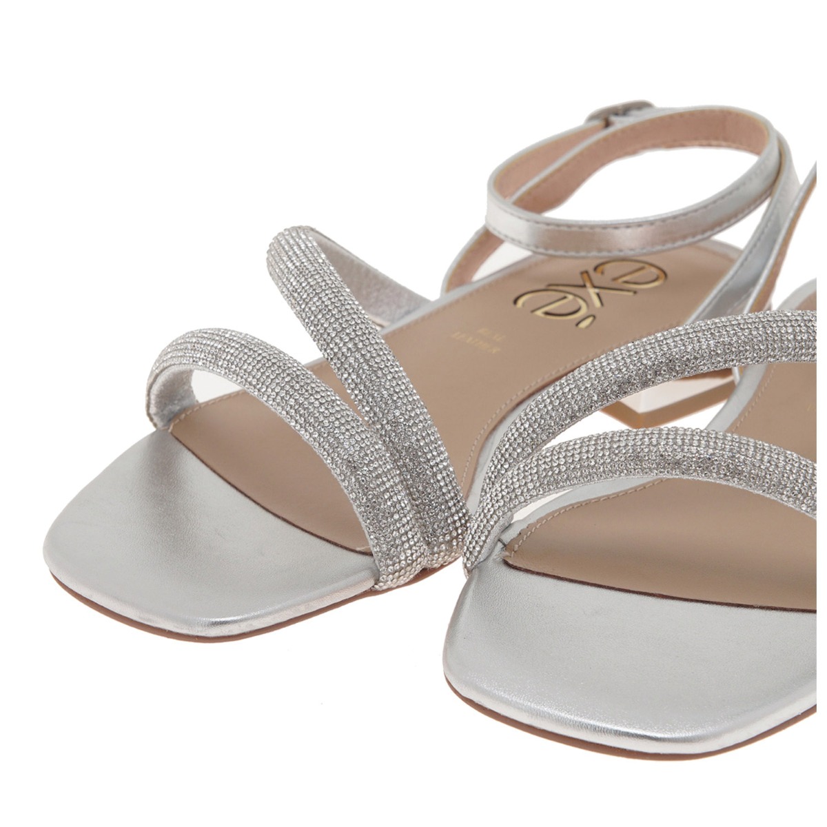 Exe γυναικείο σανδάλι σε ασημί χρώμα κατασκευασμένο από οικολογικό δέρμα. Ύψος τακουνιού 2εκ.