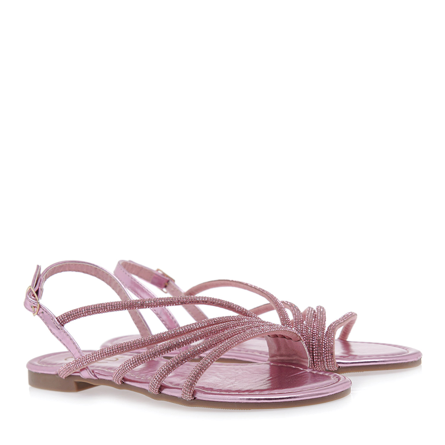 Exe γυναικείο σανδάλι σε λιλα χρώμα, κατασκευασμένο από ύφασμα και οικολογικό δέρμα. Ύψος τακουνιού 1,5εκ.