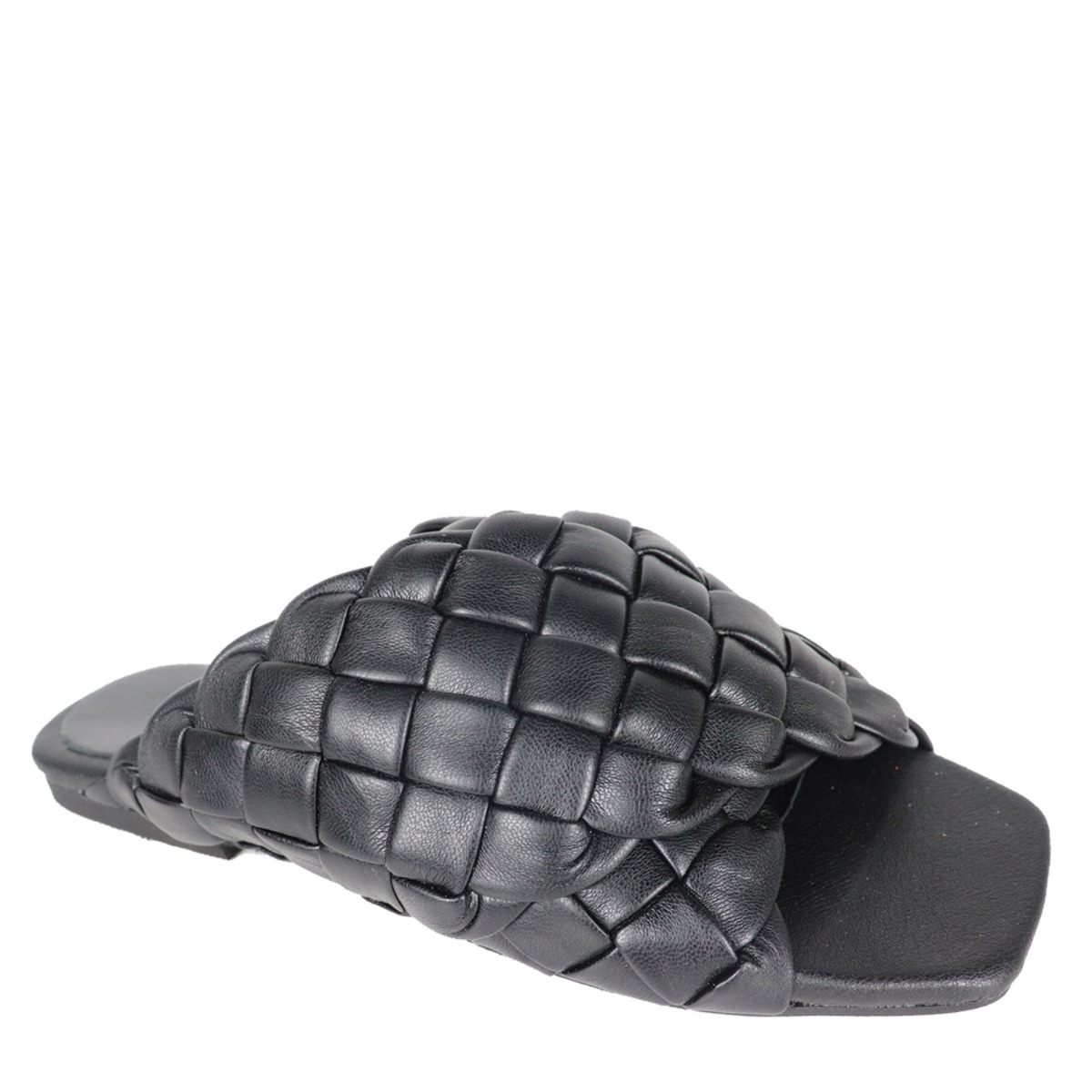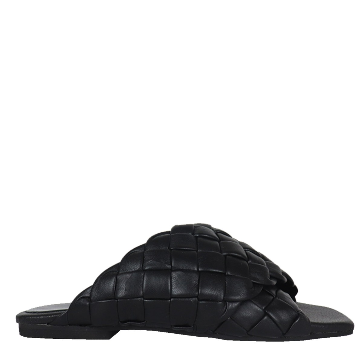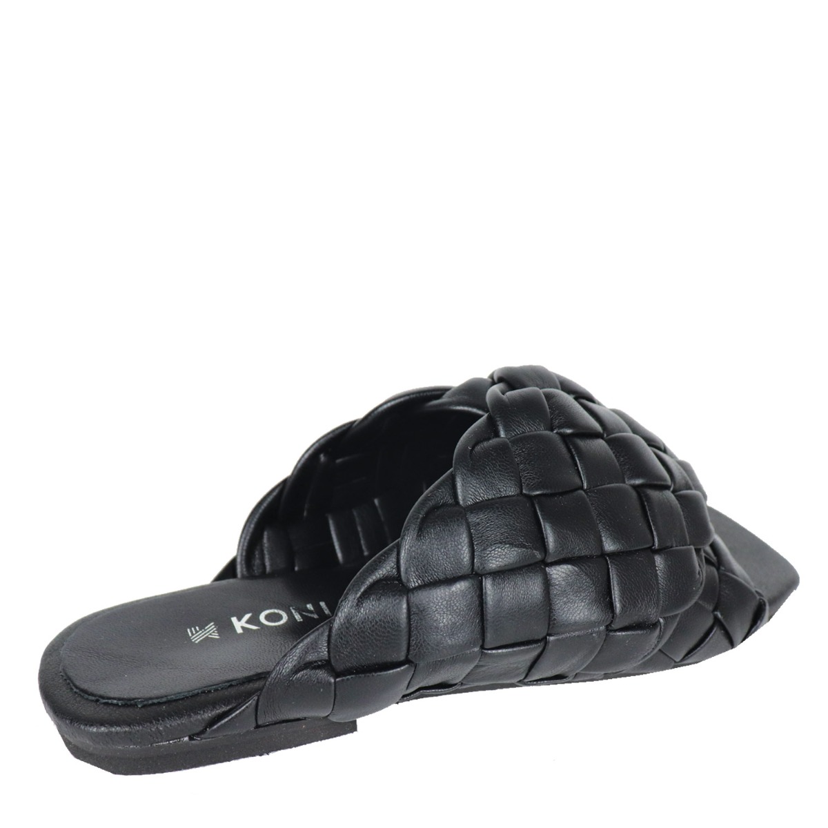 Koniarisshoes γυναικείο σανδάλι σε μαύρο χρώμα κατασκευασμένο από οικολογικό δέρμα. Διαθέτει δερμάτινο ανατομικό πατάκι. Ύψος τακουνιού 1.5εκ.
