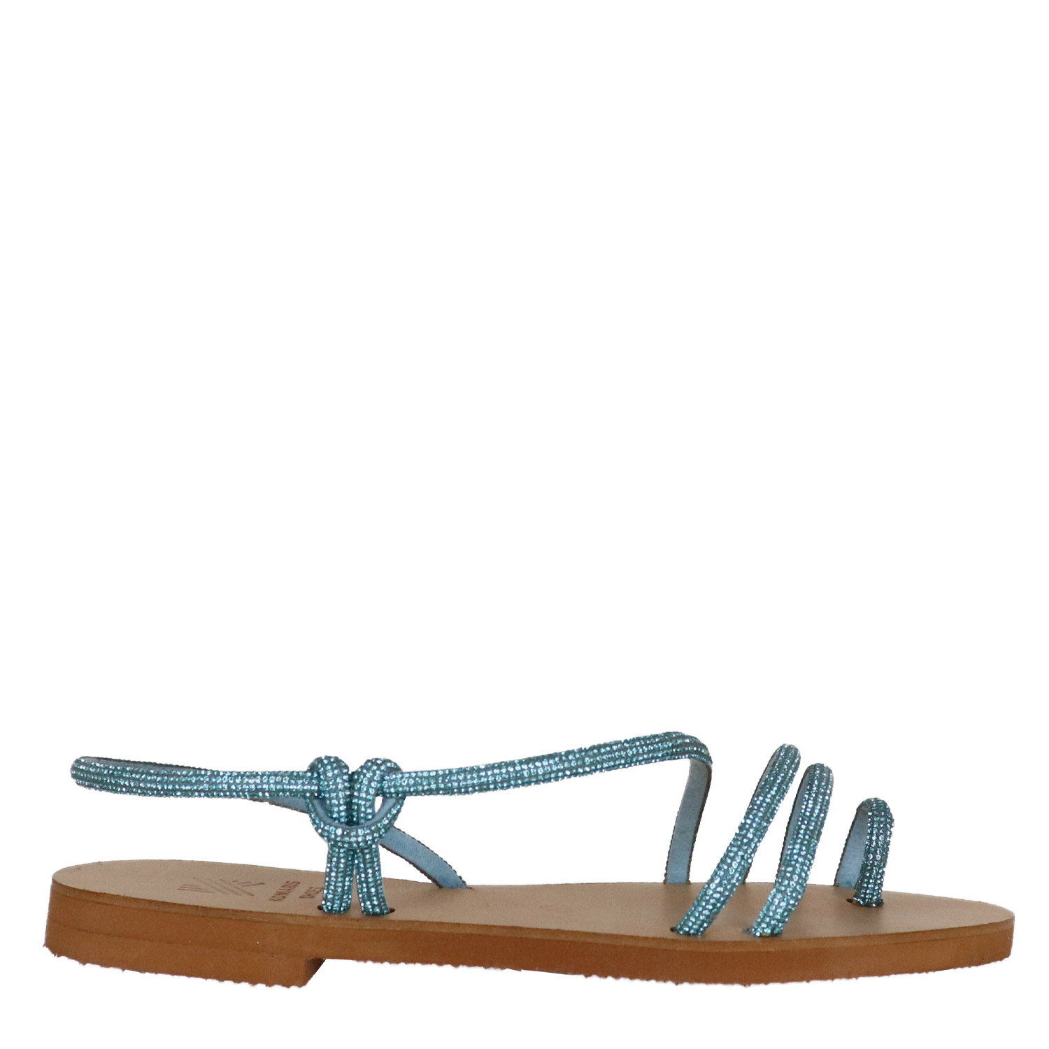 Koniarisshoes γυναικείο σανδάλι σε γαλάζιο χρώμα κατασκευασμένο από ύφασμα με στρας. Ύψος τακουνιού 1.5εκ.