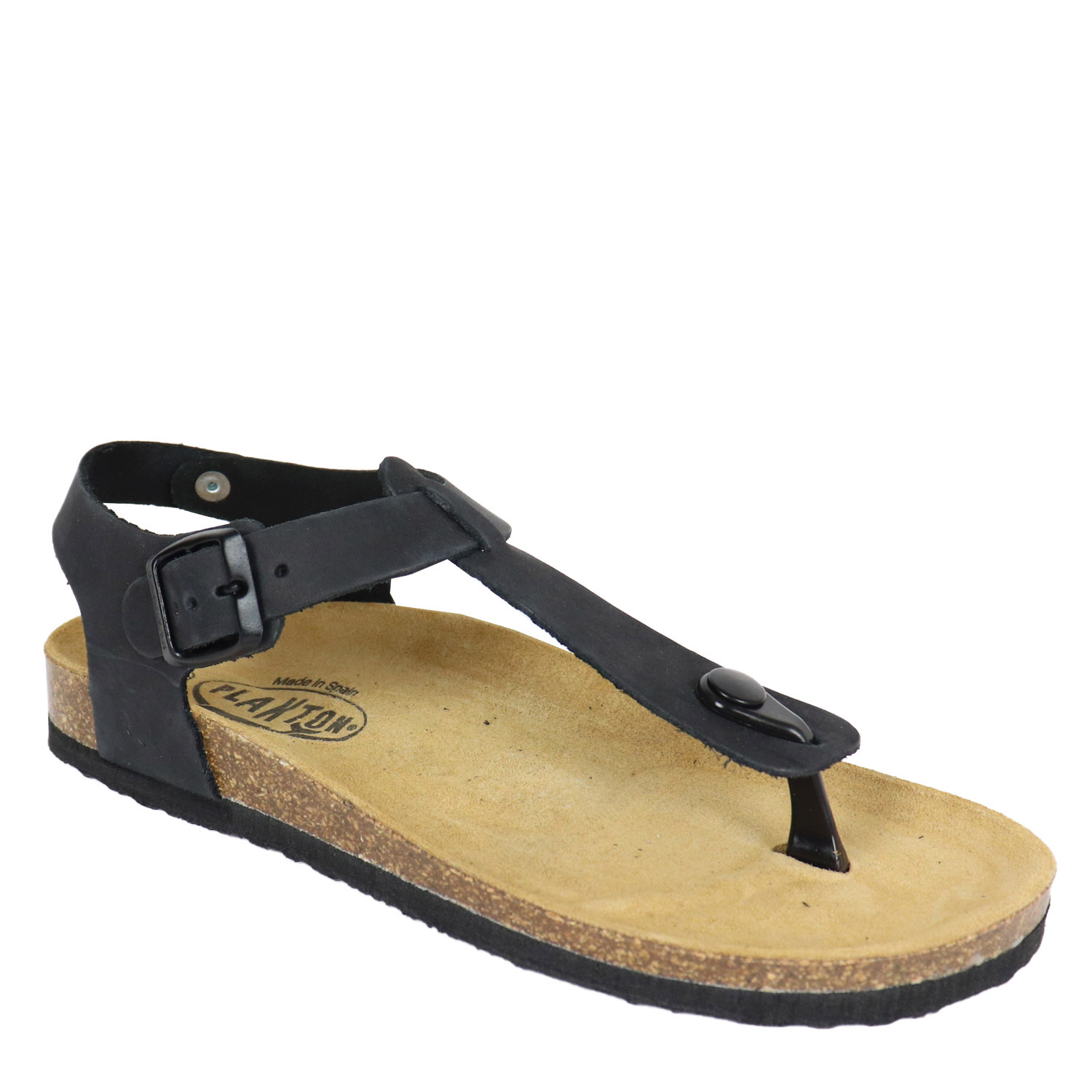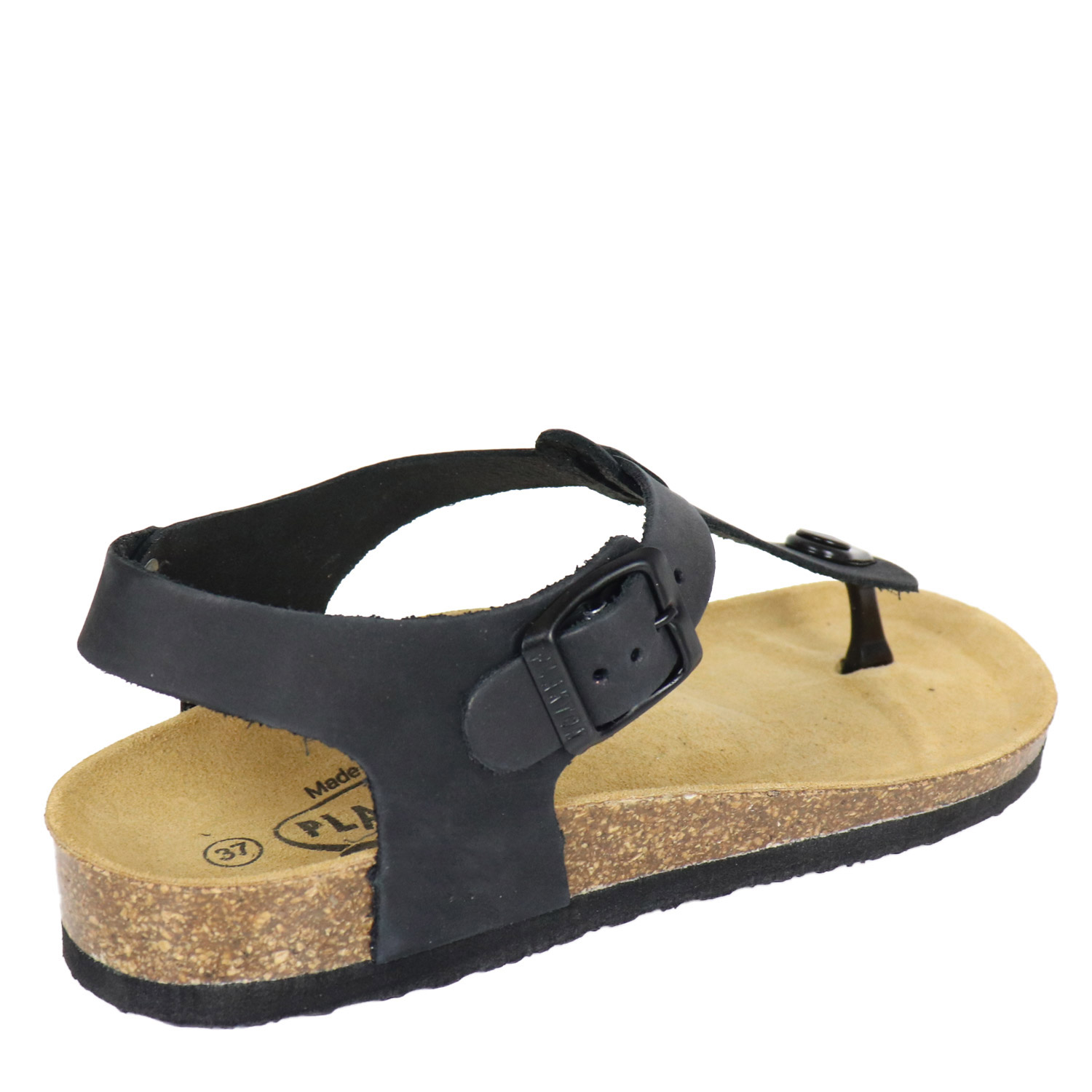 Plakton γυναικείο σανδάλι σε μαύρο χρώμα κατασκευασμένο από δέρμα, με δερμάτινο ανατομικό πατάκι. Ύψος 2.5εκ.