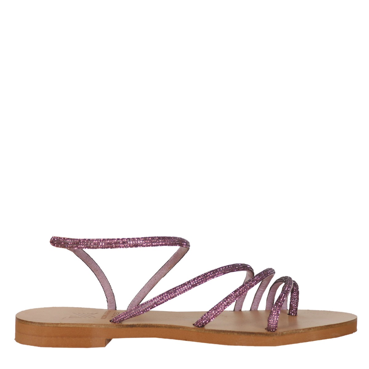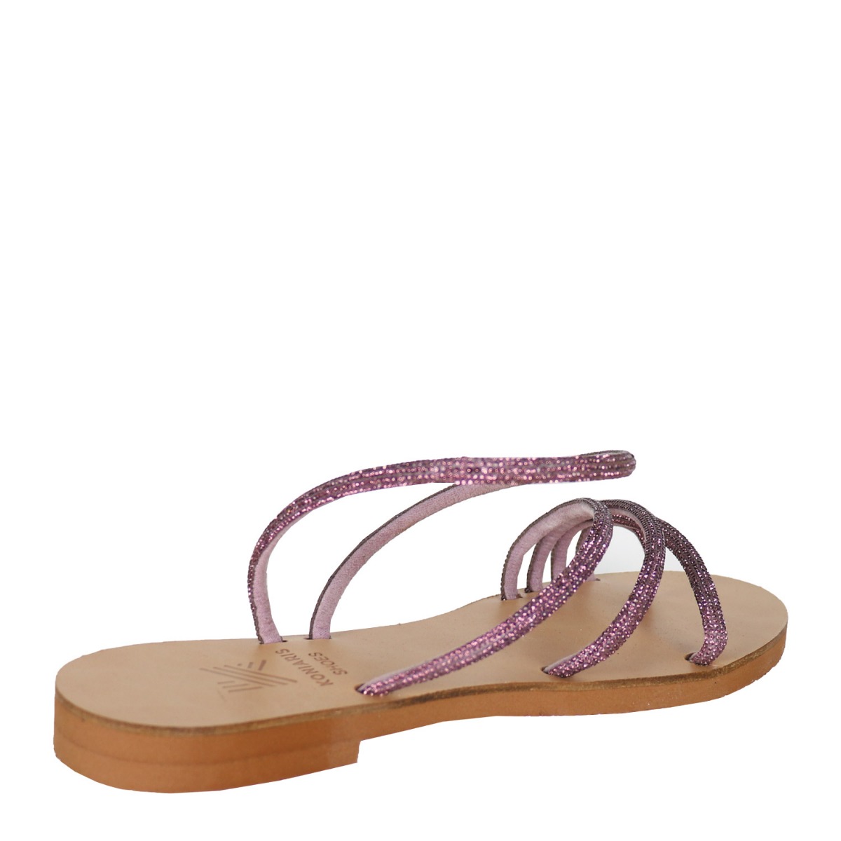 Koniarisshoes γυναικείο σανδάλι σε μωβ χρώμα κατασκευασμένο από ύφασμα με στρας. Ύψος τακουνιού 1.5εκ.