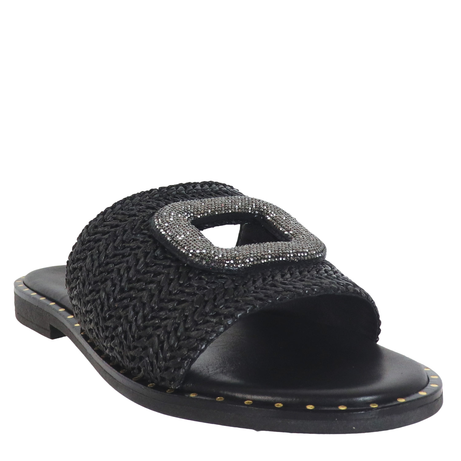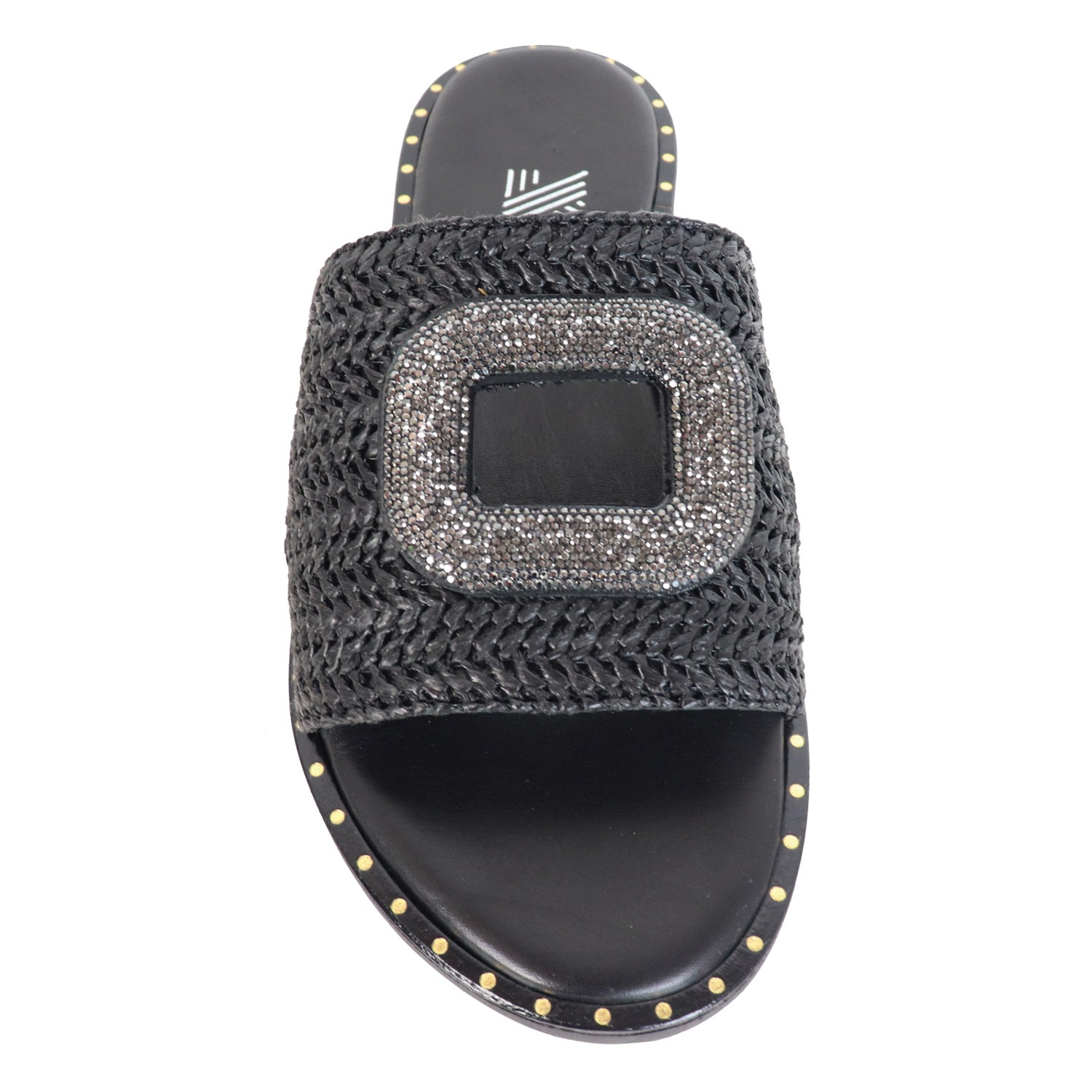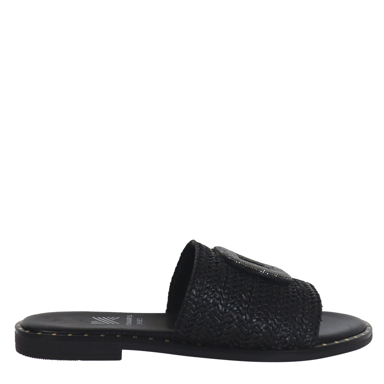 Koniarisshoes γυναικείο σανδάλι, σε μαύρο χρώμα, κατασκευασμένο από ψάθα. Ύψος σόλας 1.5εκ.