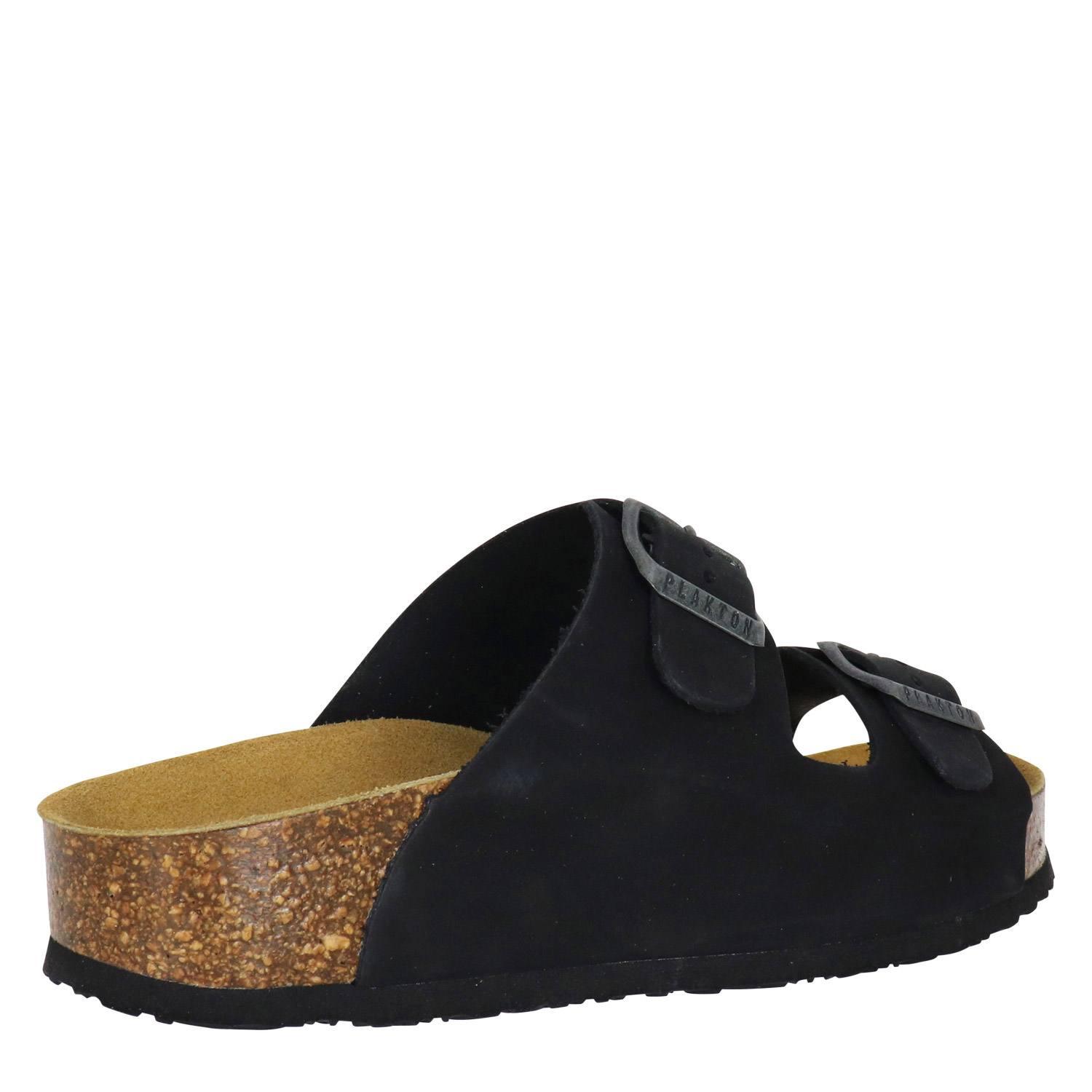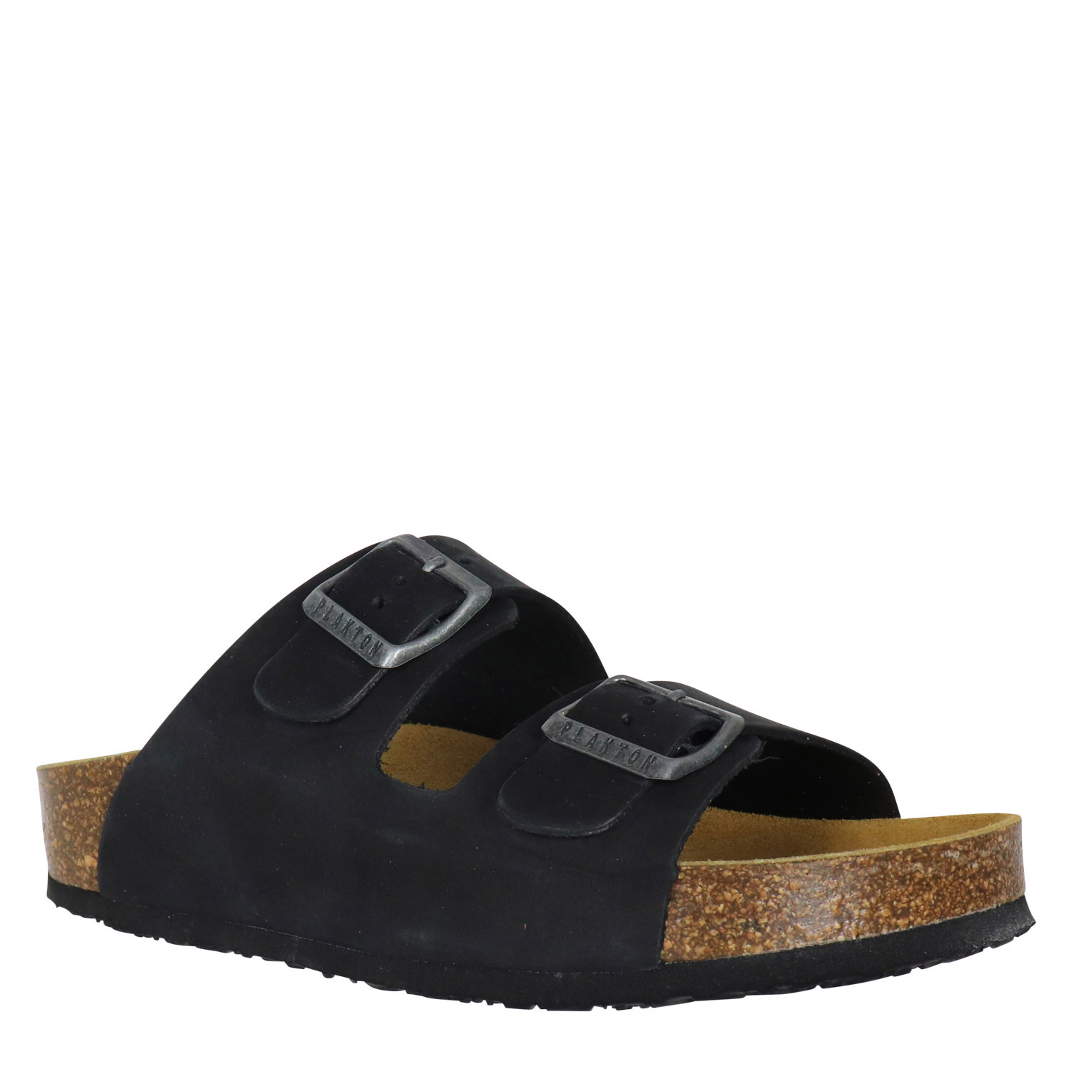 Plakton γυναικείο σανδάλι, σε μαύρο χρώμα, κατασκευασμένο από δέρμα, με ανατομικό πάτο. Ύψος σόλας 3.5εκ.