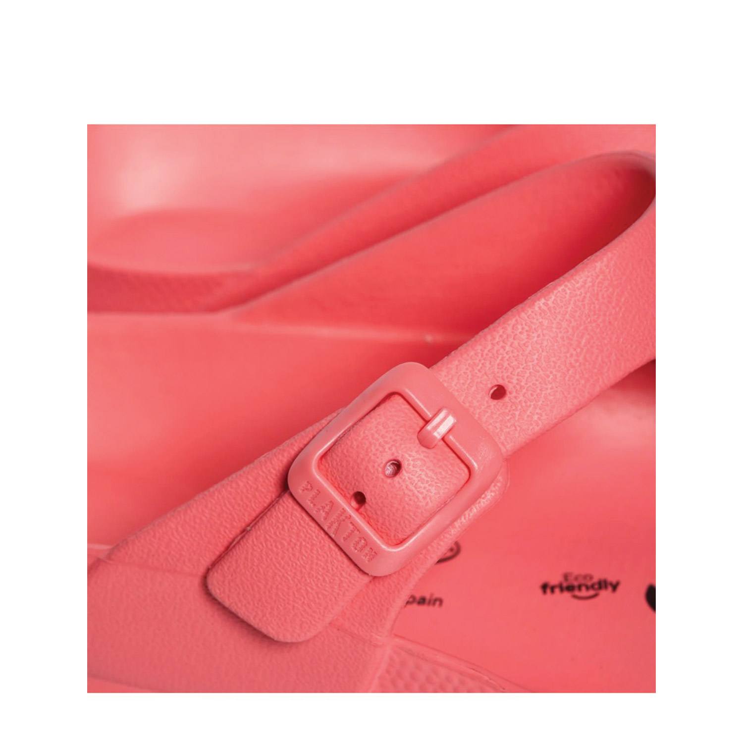 Plakton γυναικείο σανδάλι σε ροζ χρώμα κατασκευασμένο από vegan υλικά με αντιβακτηριακές ιδιότητες και ανατομικό πατάκι.