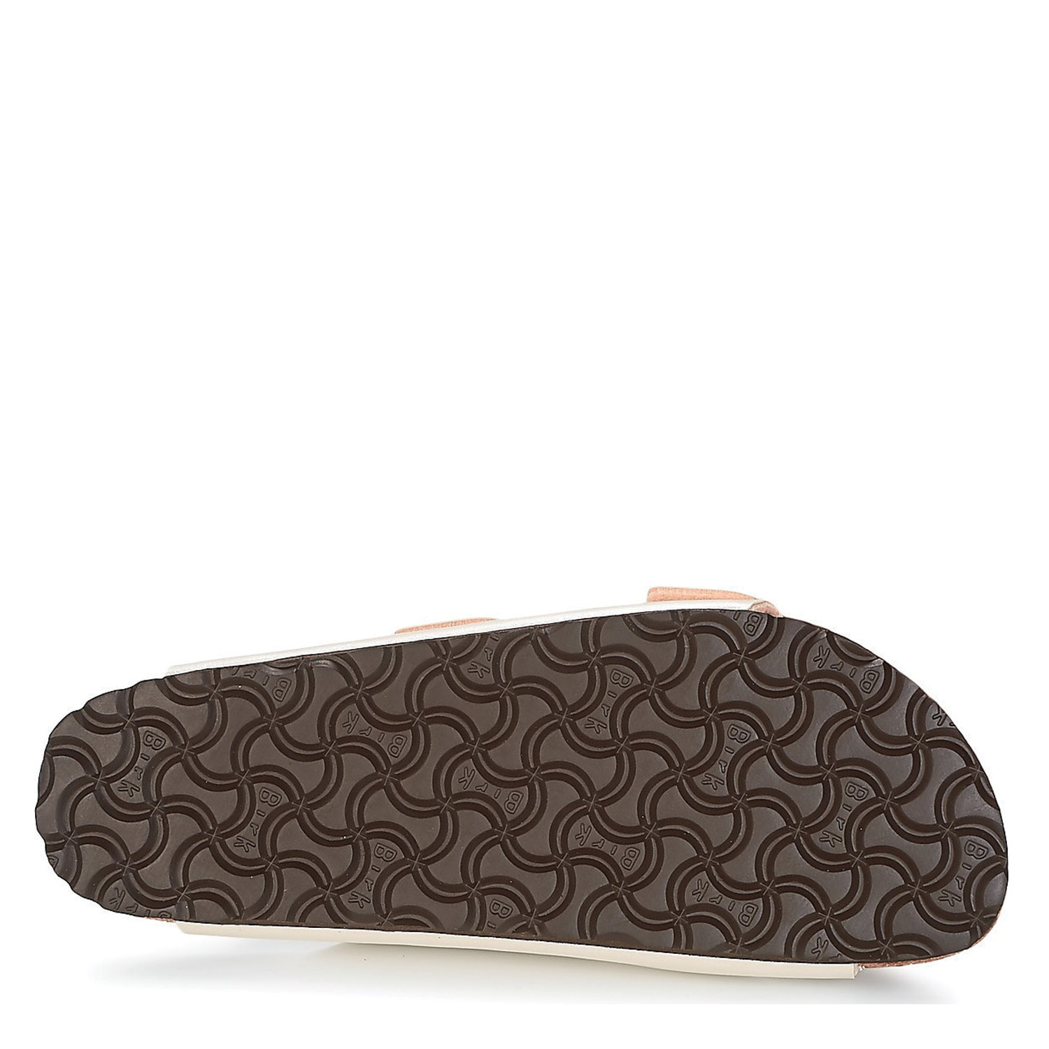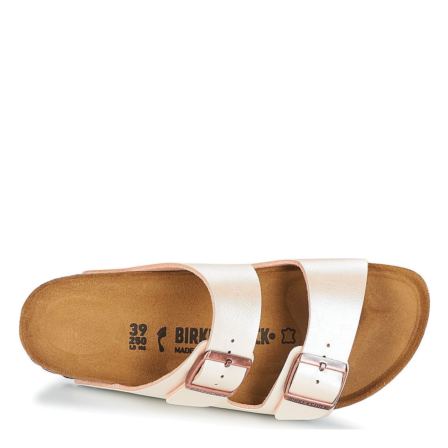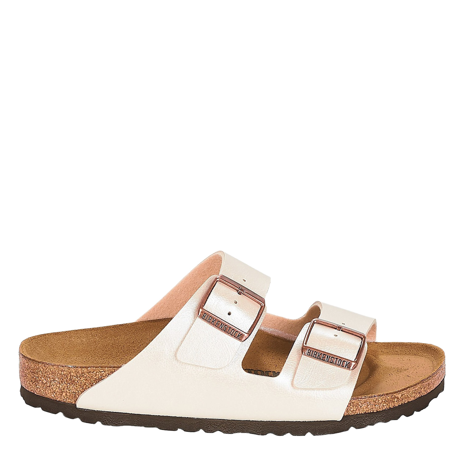Birkenstock γυναικείο σανδάλι, σε πέρλα χρώμα, κατασκευασμένο από οικολογικό δέρμα, με ανατομικό πάτο. Ύψος σόλας 3εκ.