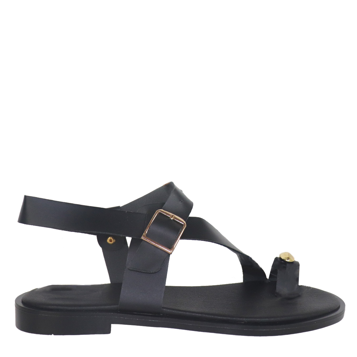 Koniarisshoes γυναικείο σανδάλι, σε μαύρο χρώμα, κατασκευασμένο από δέρμα. Ύψος τακουνιού 1.5εκ.
