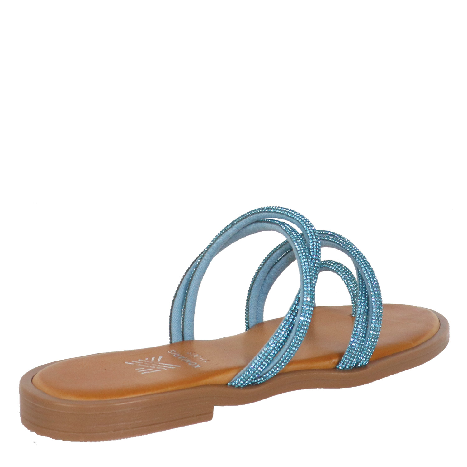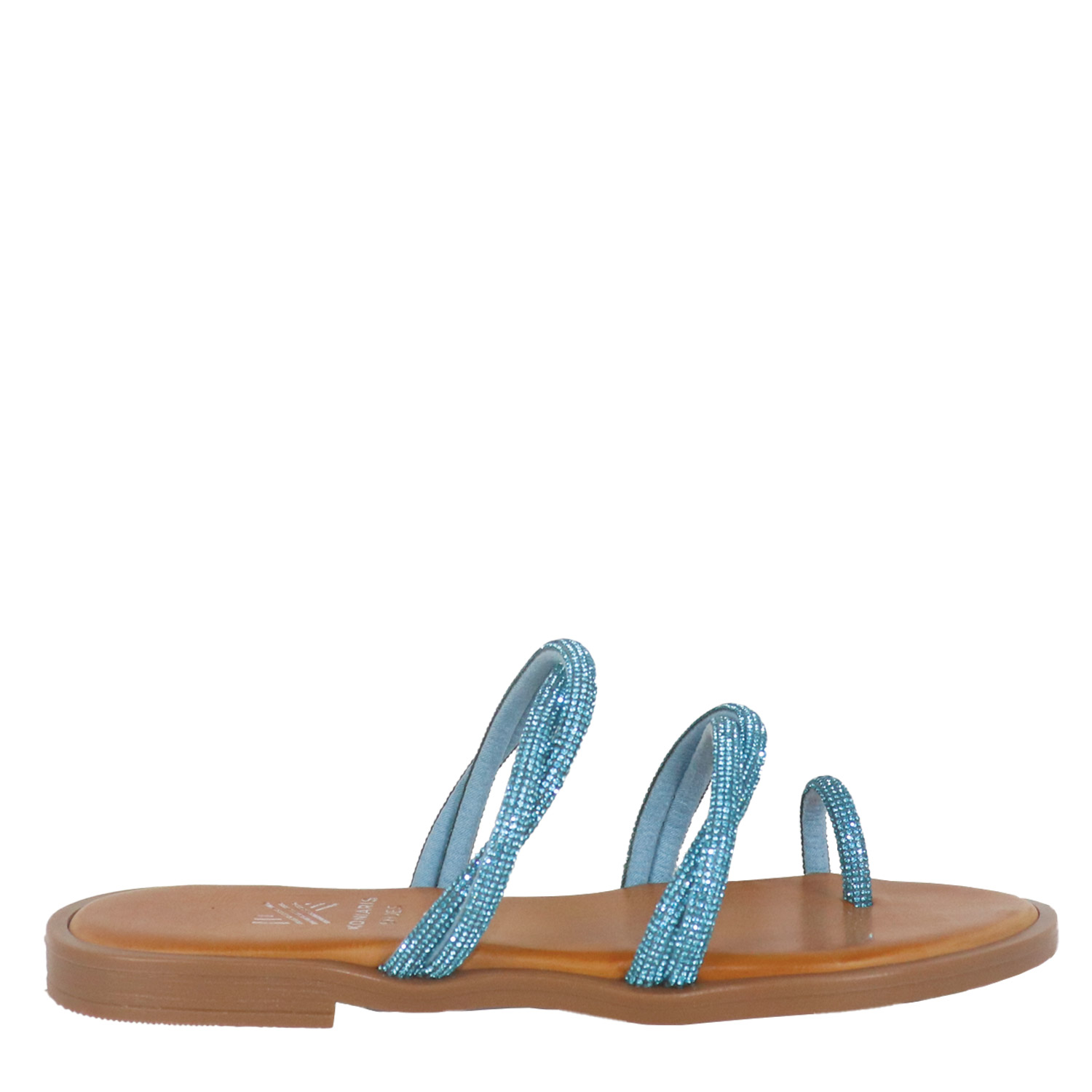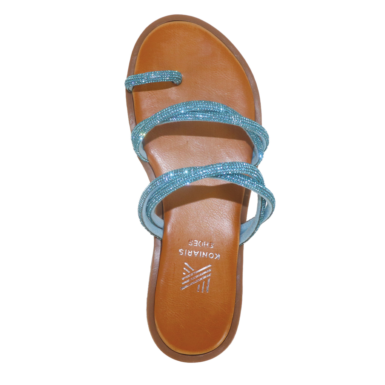 Koniarisshoes γυναικείο σανδάλι, σε γαλάζιο χρώμα, κατασκευασμένο από οικολογικό δέρμα. Ύψος τακουνιού 1.5εκ.