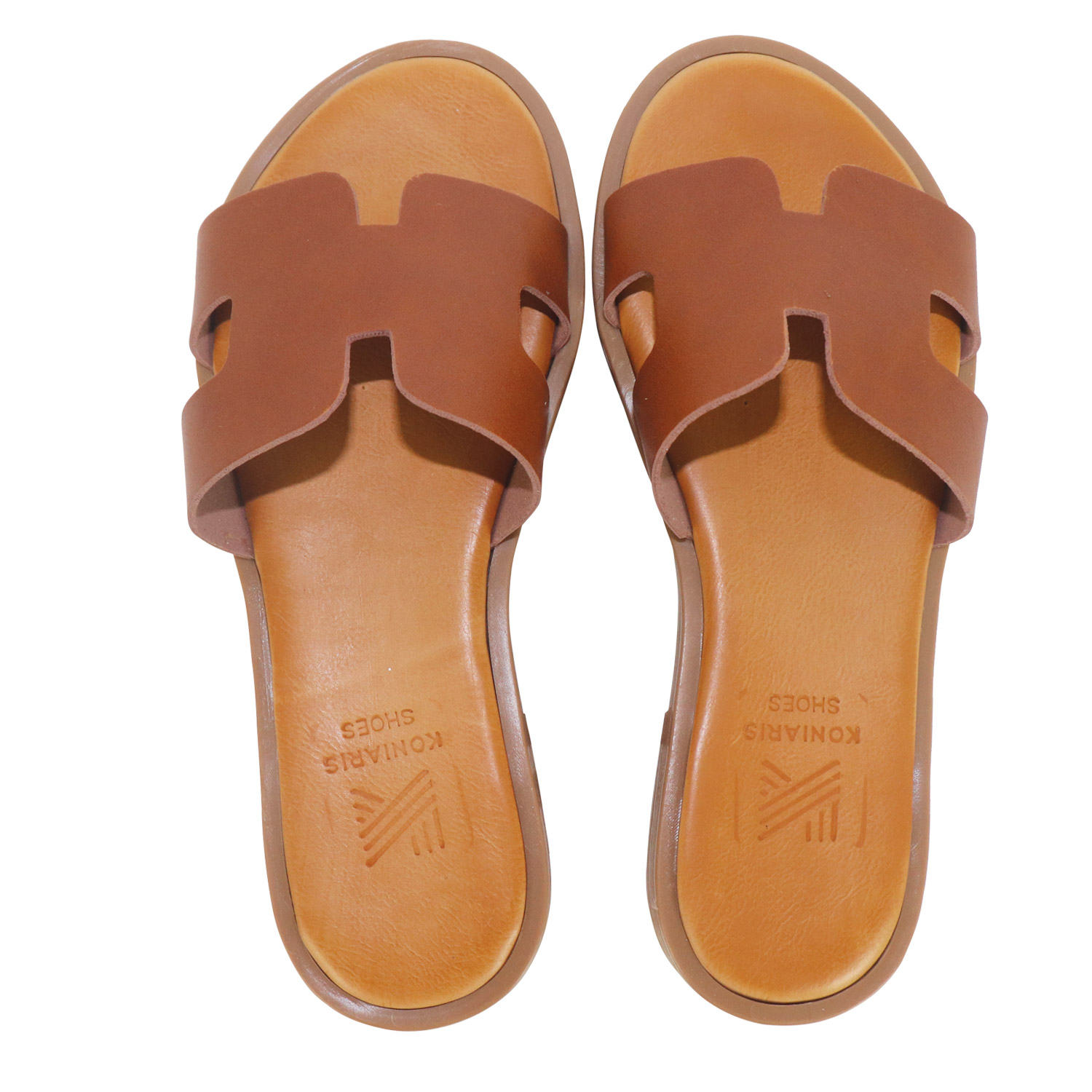Koniarisshoes γυναικείο σανδάλι, σε ταμπά χρώμα, κατασκευασμένο από οικολογικό δέρμα. Ύψος τακουνιού 1.5εκ.