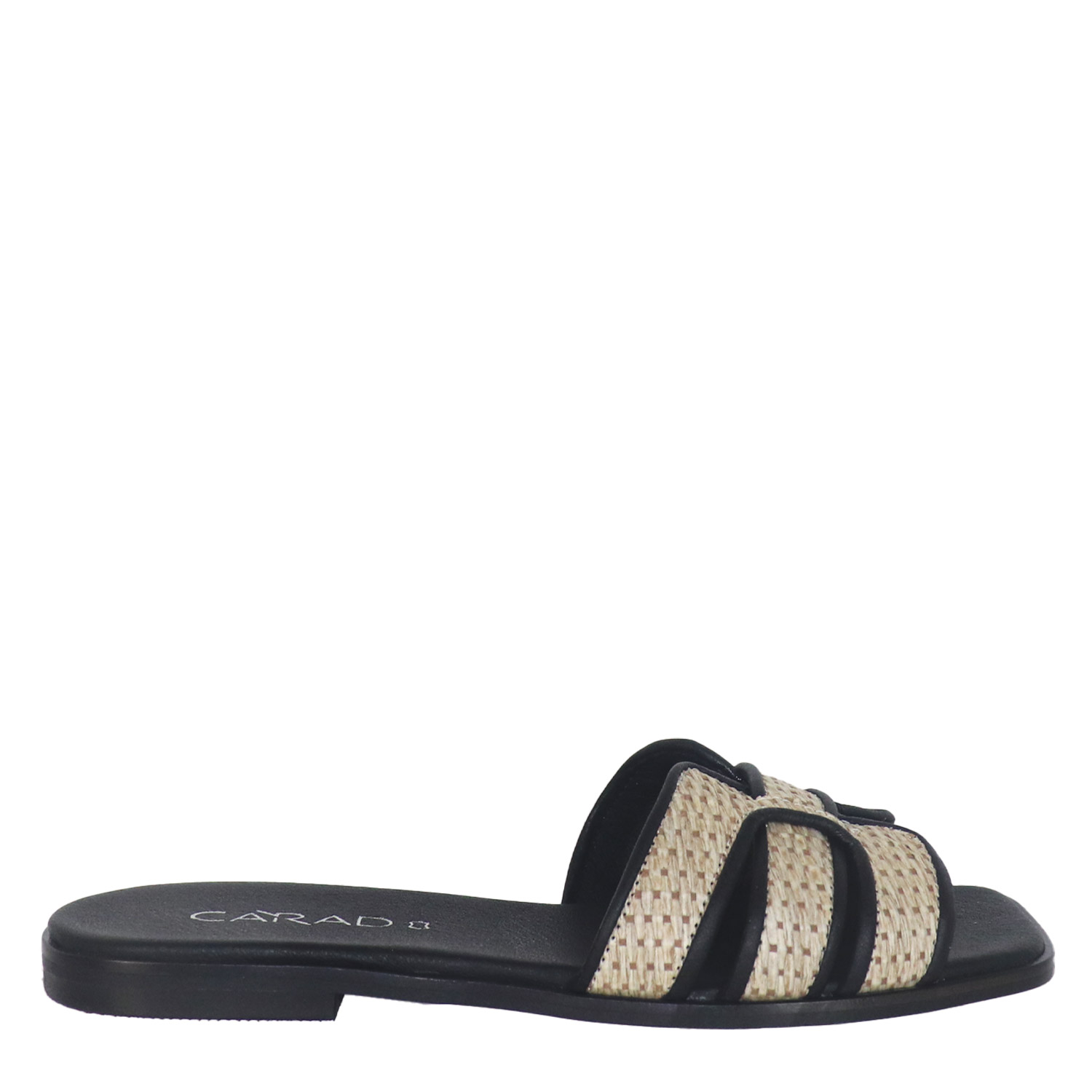 Koniarisshoes γυναικείο σανδάλι, σε μαύρο χρώμα, κατασκευασμένο από ύφασμα, με δερμάτινο πάτο. Ύψος τακουνιού 1.5εκ.