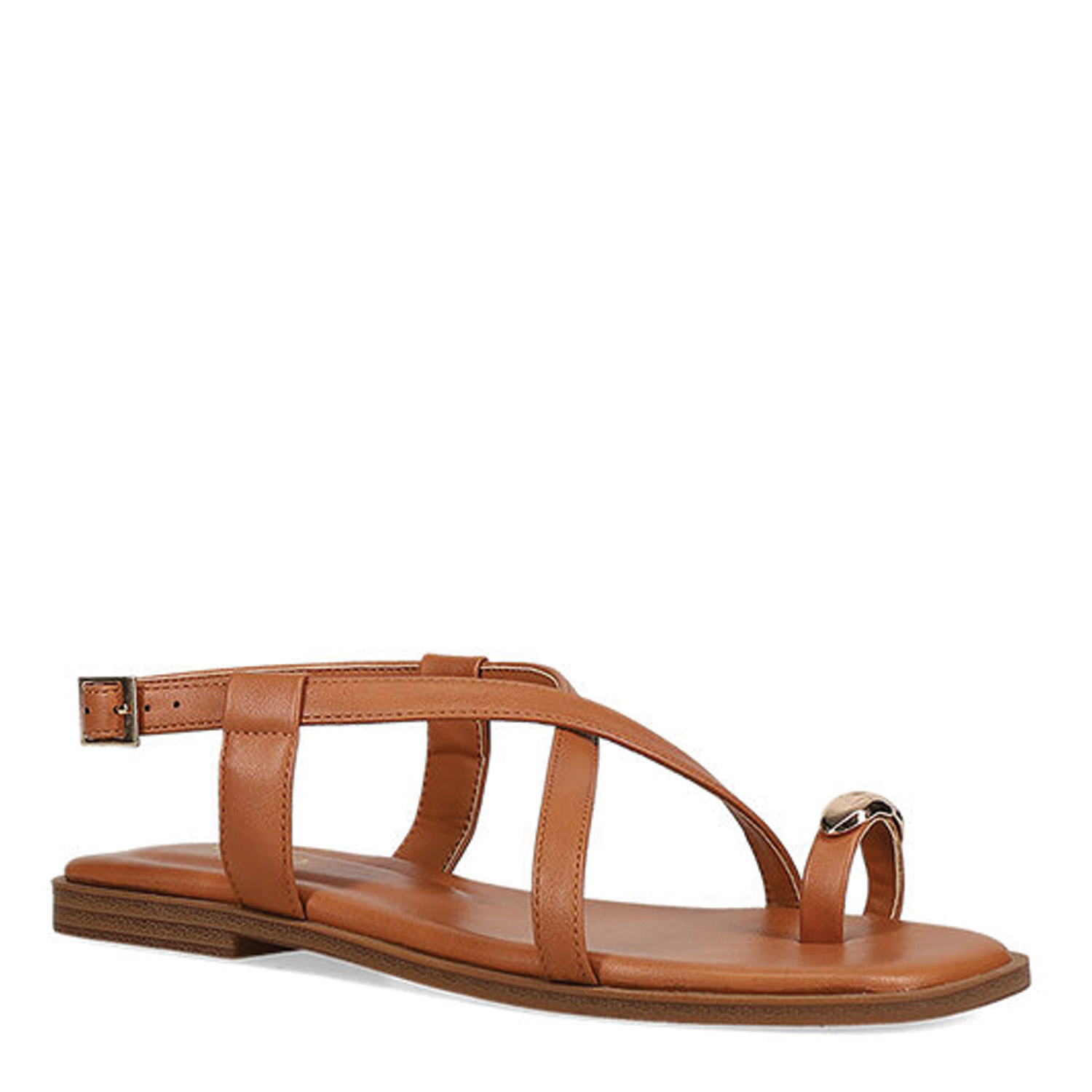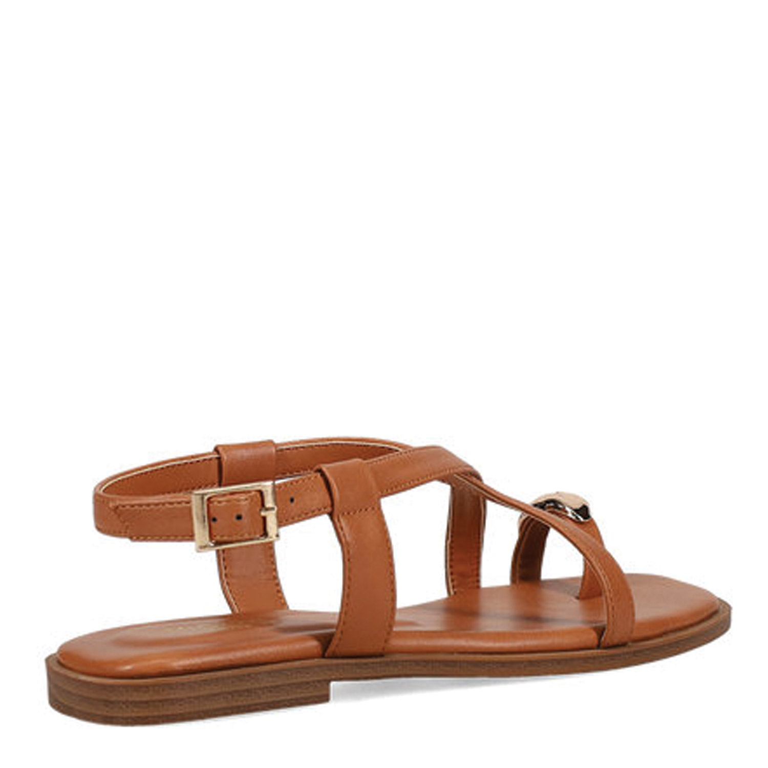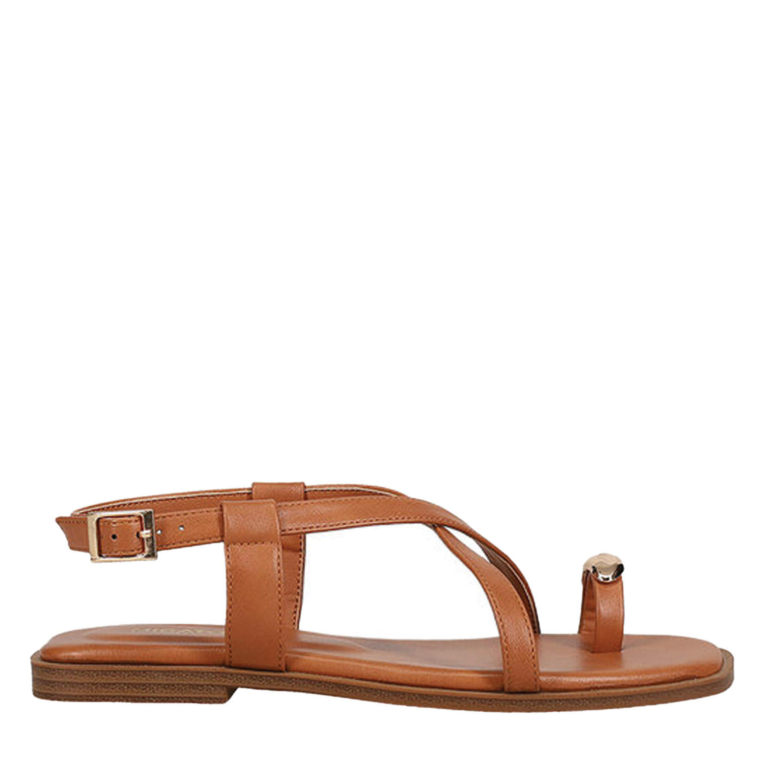 Ταμπά σανδάλι. Διαθέτει toe ring και χιαστί λουράκια. Δένει με ρυθμιζόμενο λουράκι στη φτέρνα.