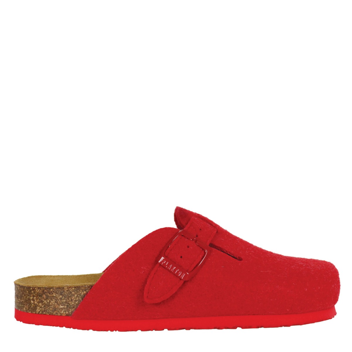 Plakton γυναικείο slipper σε κόκκινο χρώμα κατασκευασμένο από ύφασμα, με δερμάτινο ανατομικό πατάκι. Ύψος σόλας 2.5εκ.