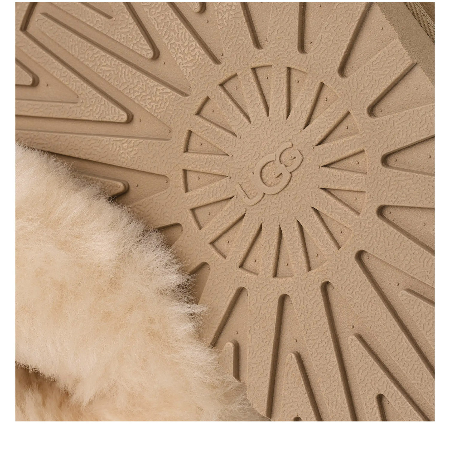 UGG Tazzelle MustardSeed – Χειμερινό γυναικείο slipper που συνδυάζei στυλ και άνεση. Κατασκευασμένο από γνήσιο καστόρι, με επένδυση από αυθεντικό sheepskin που προσφέρει μοναδική ζεστασιά και απαλότητα. Η σόλα 3εκ. παρέχει αντικραδασμική προστασία και άνεση σε κάθε βήμα.