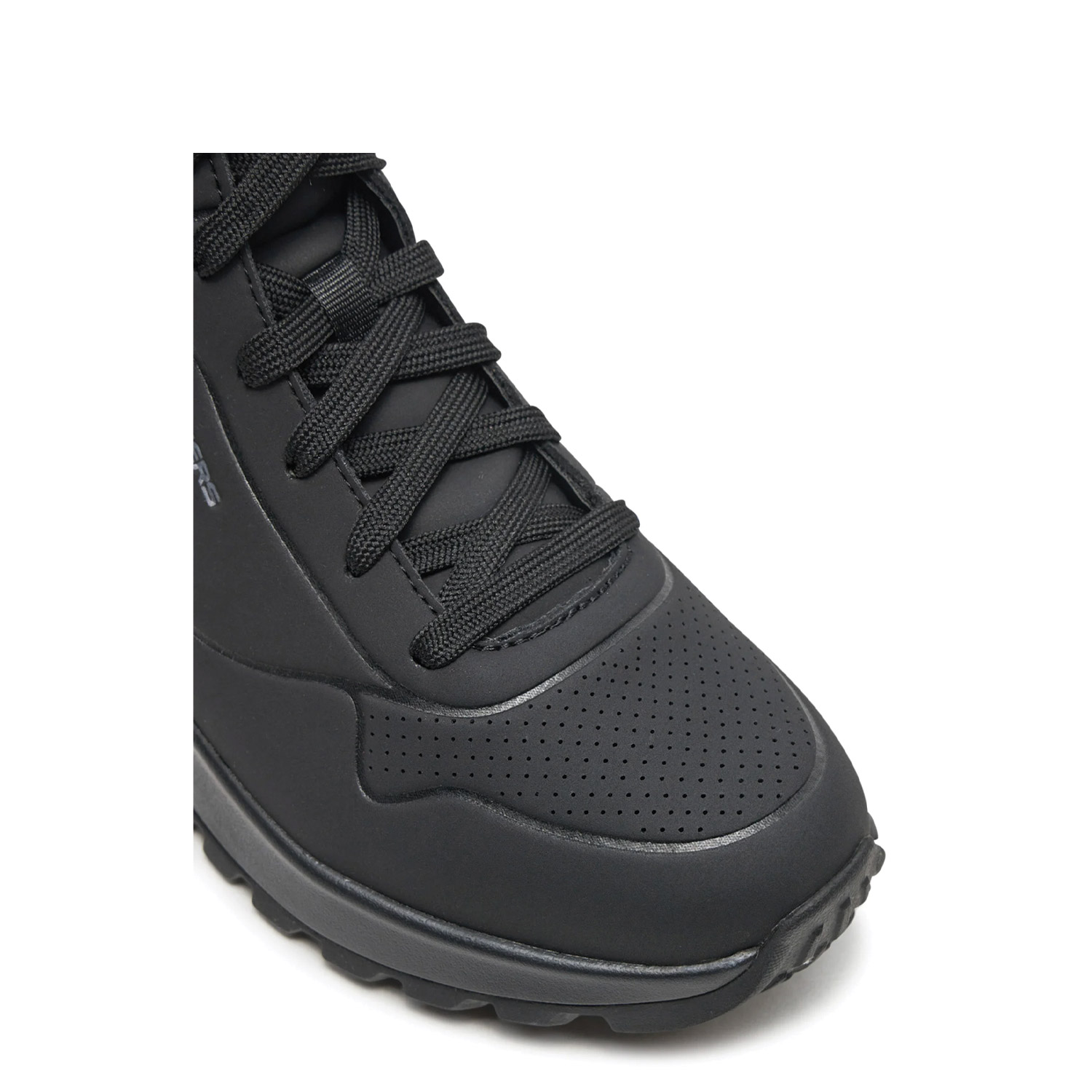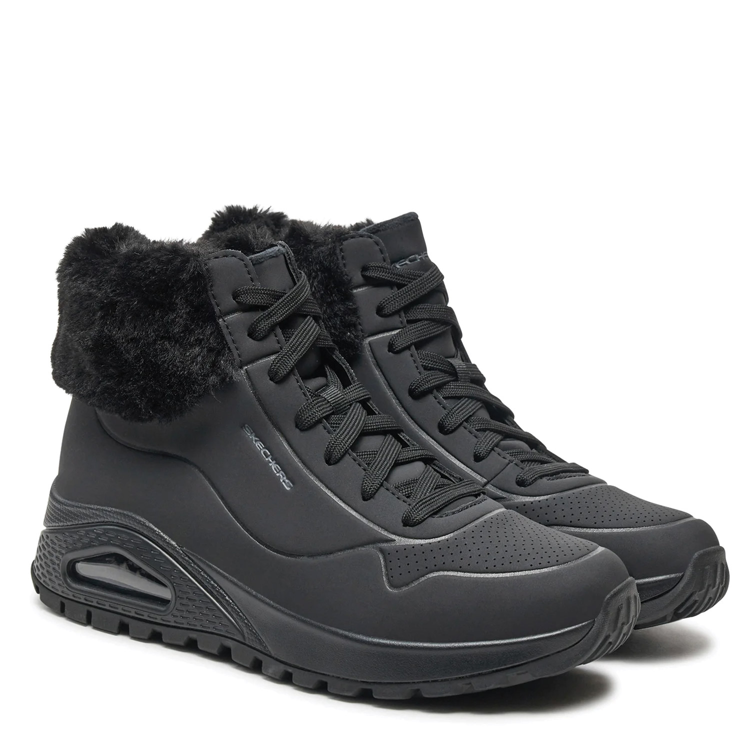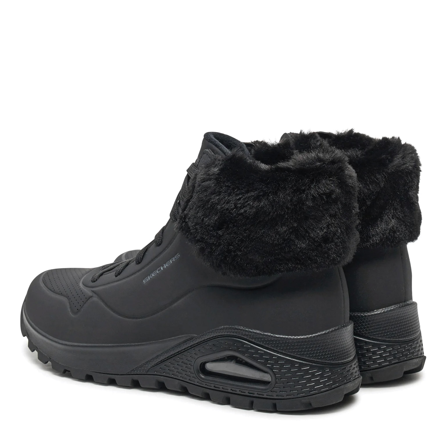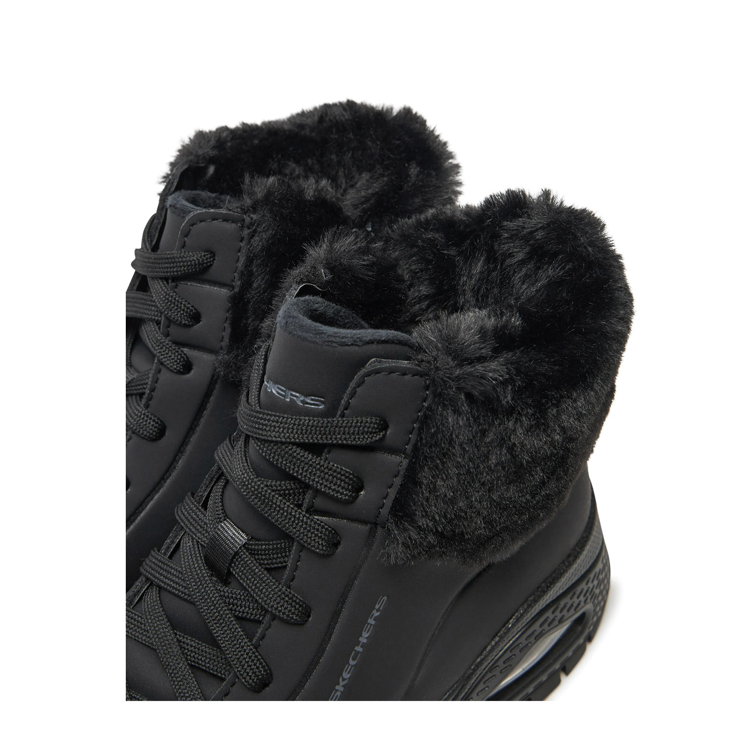 Skechers γυναικείο sneaker μποτάκι, σε μαύρο χρώμα, κατασκευασμένο από οικολογικό δέρμα, με ανατομικό πάτο από memory foam. Ύψος σόλας 4εκ.