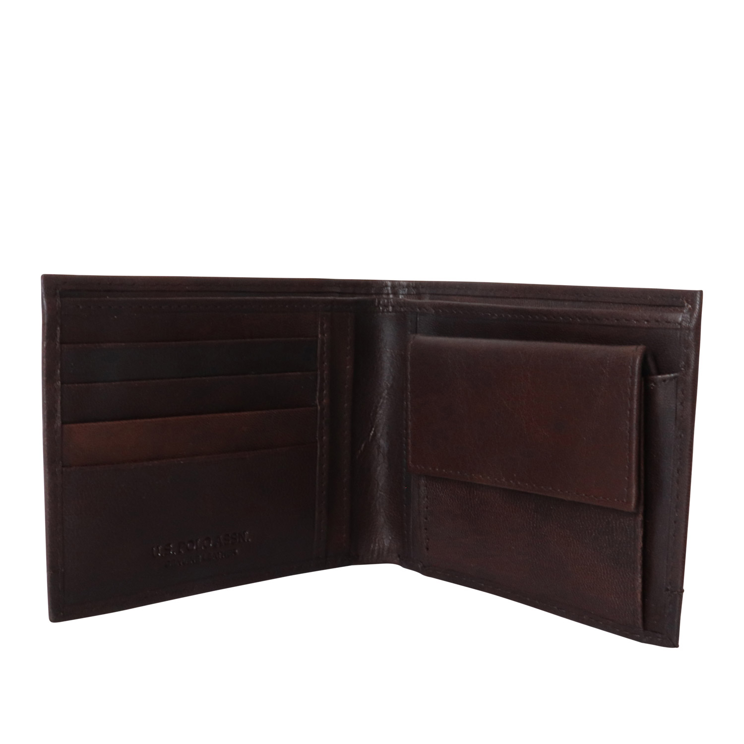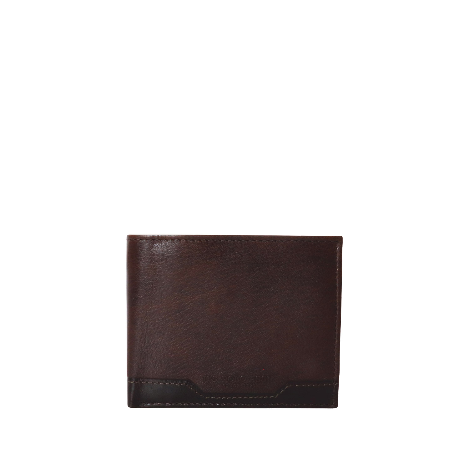 U.S. Polo ASSN. ανδρικό πορτοφόλι, σε καφέ χρώμα, κατασκευασμένο από δέρμα με RFID. Ύψος 10εκ., Μήκος 12εκ.