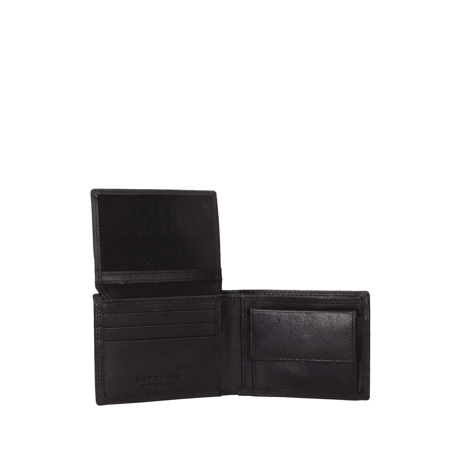 U.S. Polo ASSN. ανδρικό πορτοφόλι, σε μαύρο χρώμα, κατασκευασμένο από δέρμα, με RFID. Ύψος 8εκ., Μήκος 10.5εκ.