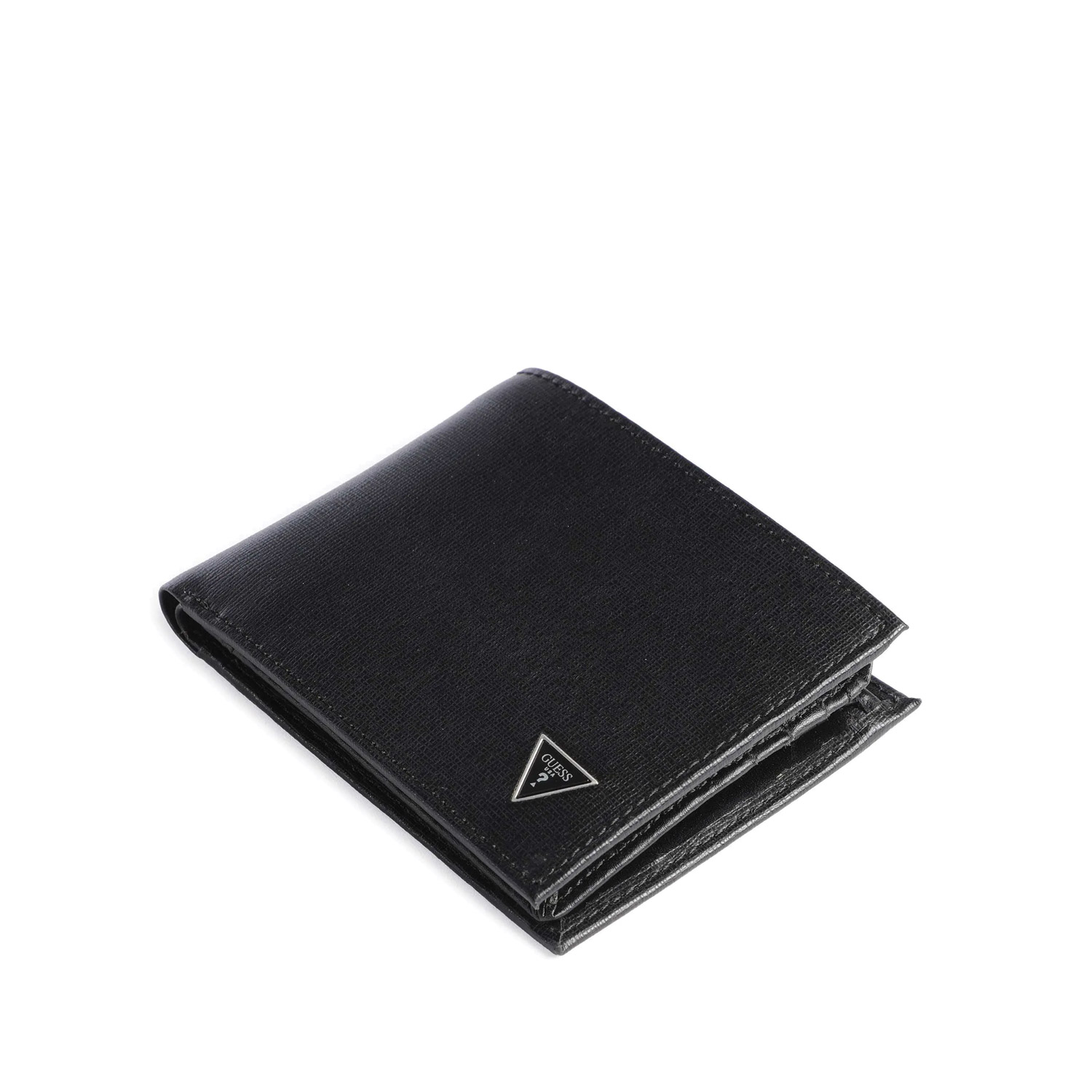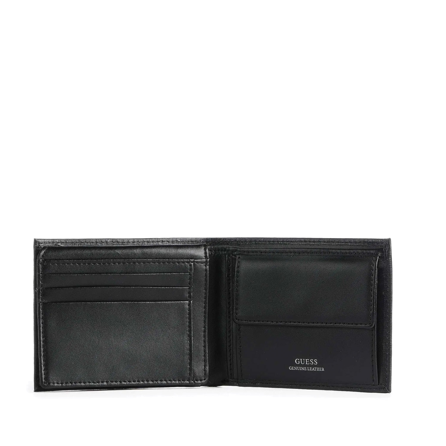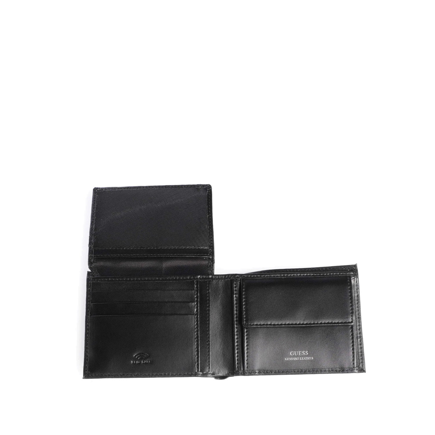 Guess ανδρικό πορτοφόλι, σε μαύρο χρώμα, κατασκευασμένο από δέρμα. Ύψος 9.5εκ., Μήκος 12.5εκ.