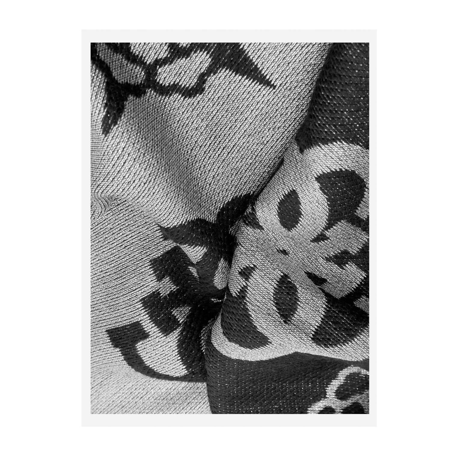Guess γυναικείο κασκόλ, σε μαύρο χρώμα, κατασκευασμένο από σύμμεικτη βισκόζη. Διαστάσεις 80×180 cm.