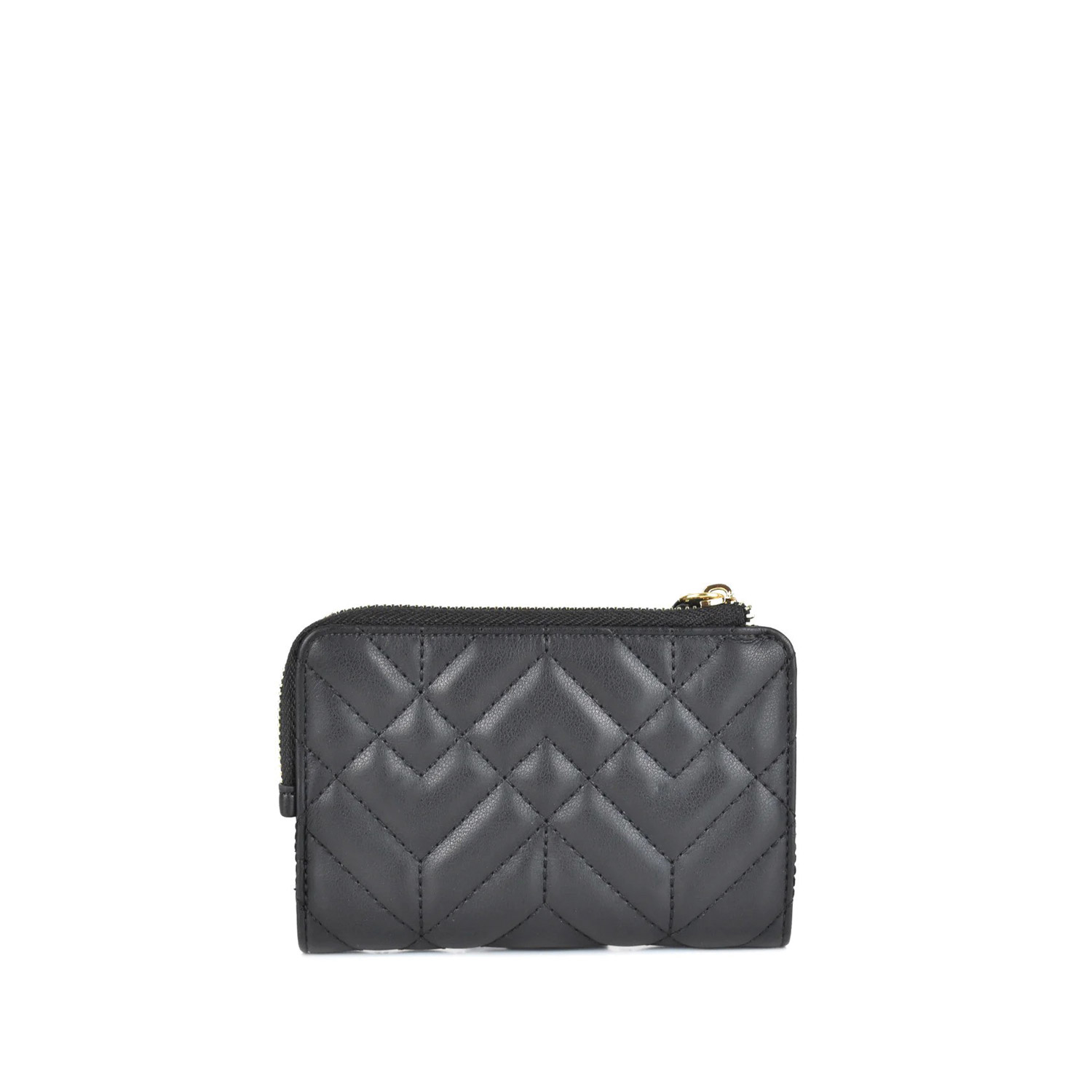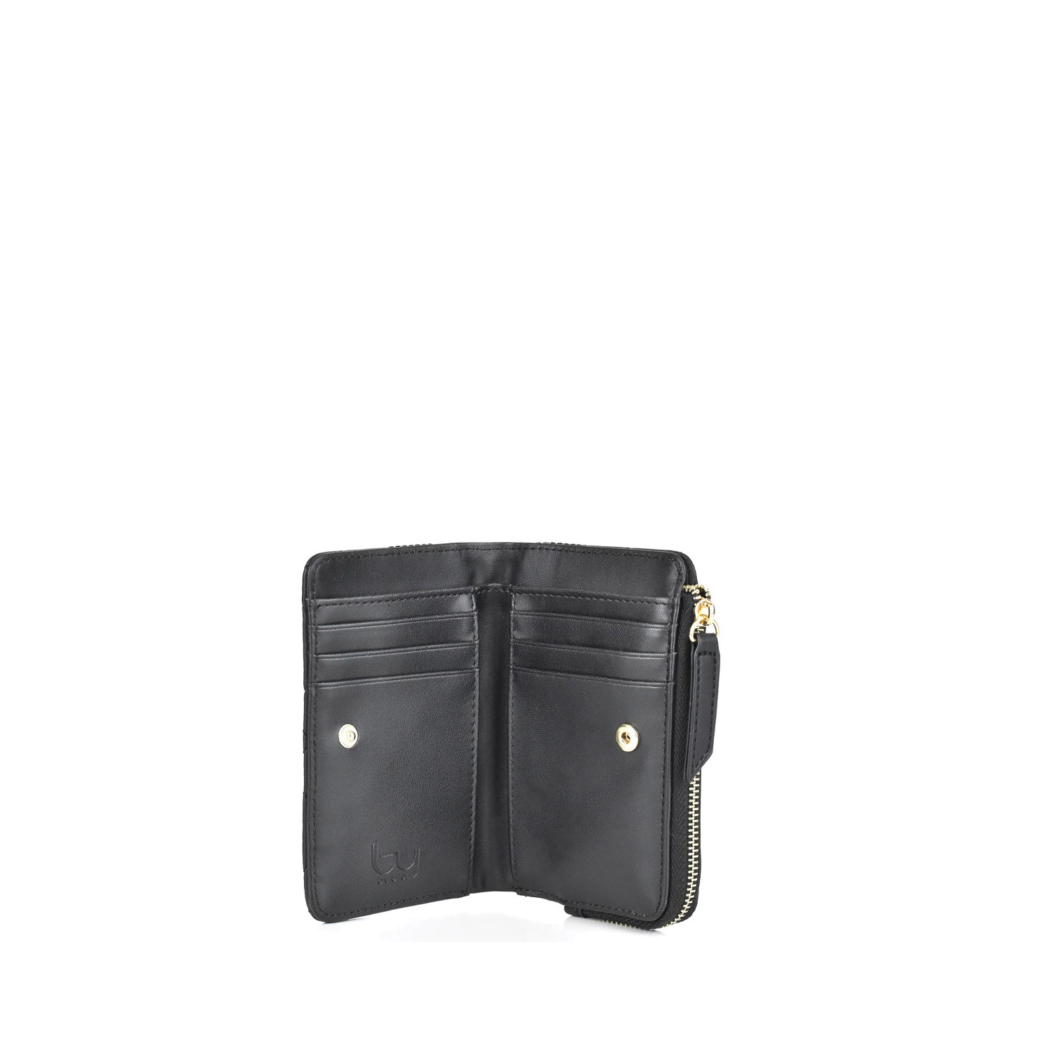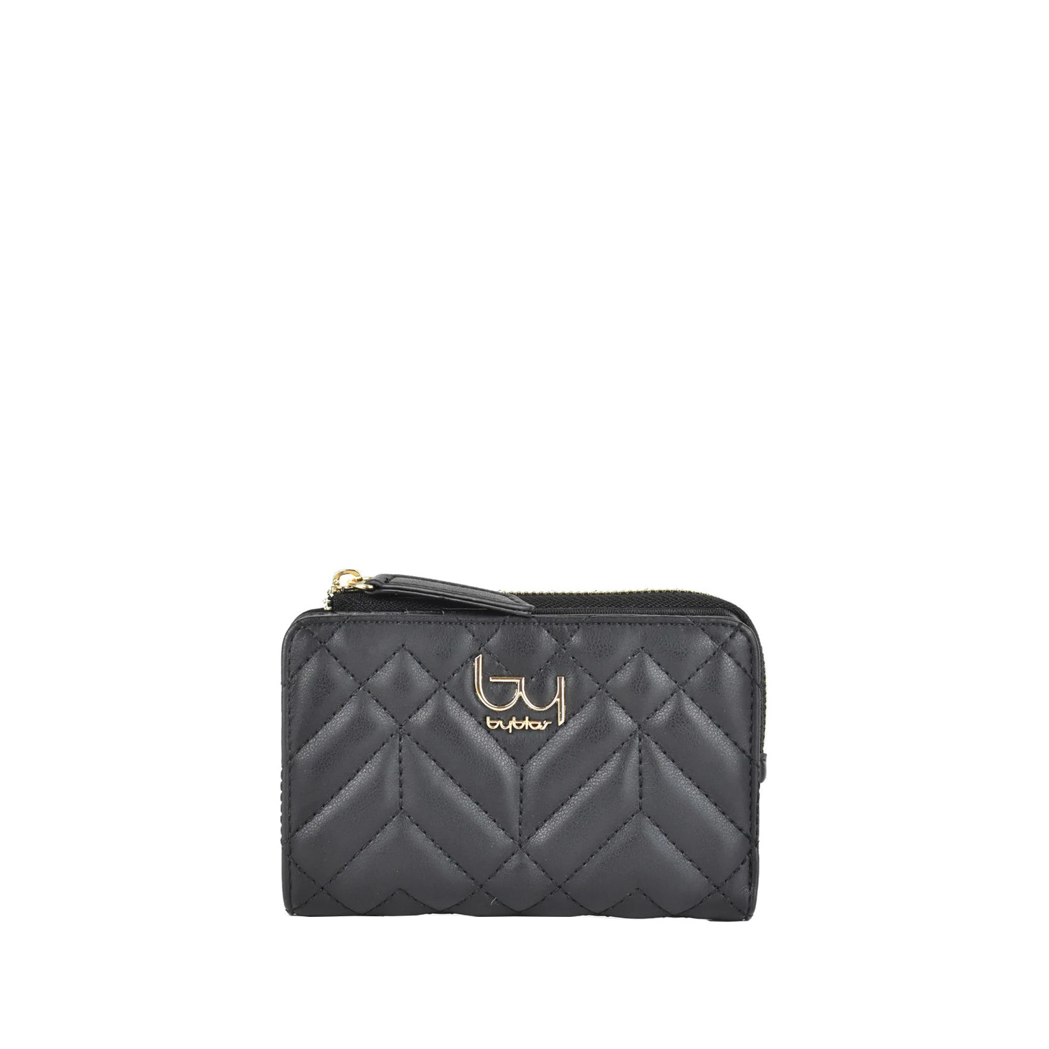 Byblos γυναικείο πορτοφόλι, σε μαύρο χρώμα, κατασκευασμένο από καπιτονέ. Ύψος 9εκ., Μήκος 13εκ.