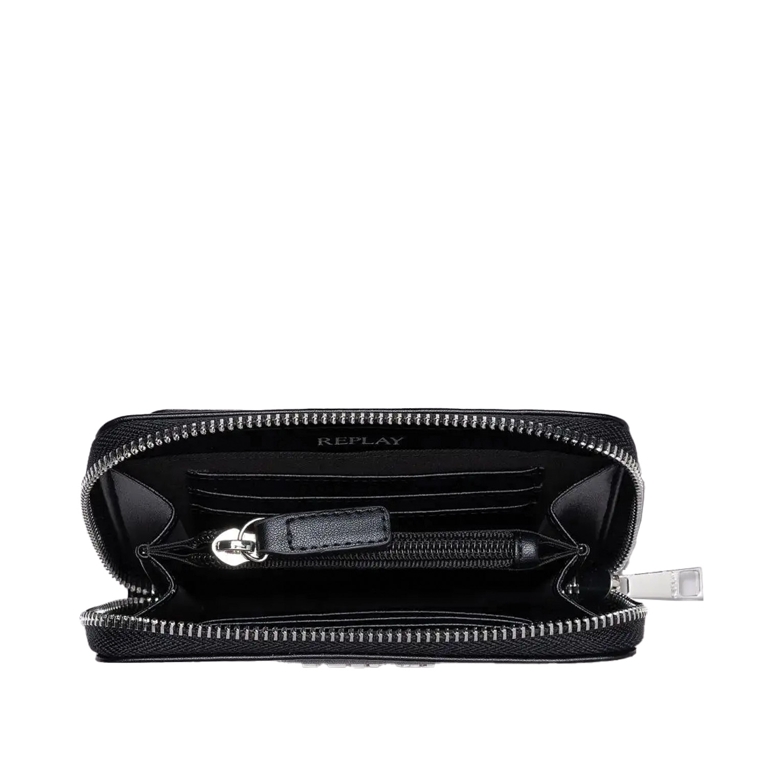 Replay γυναικείο πορτοφόλι, σε μαύρο χρώμα, κατασκευασμένο από οικολογικό δέρμα.