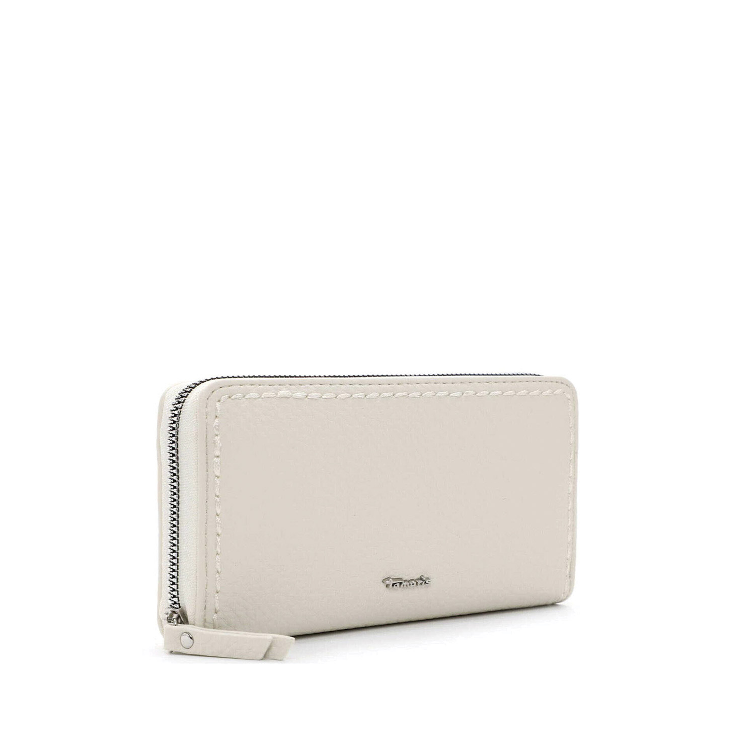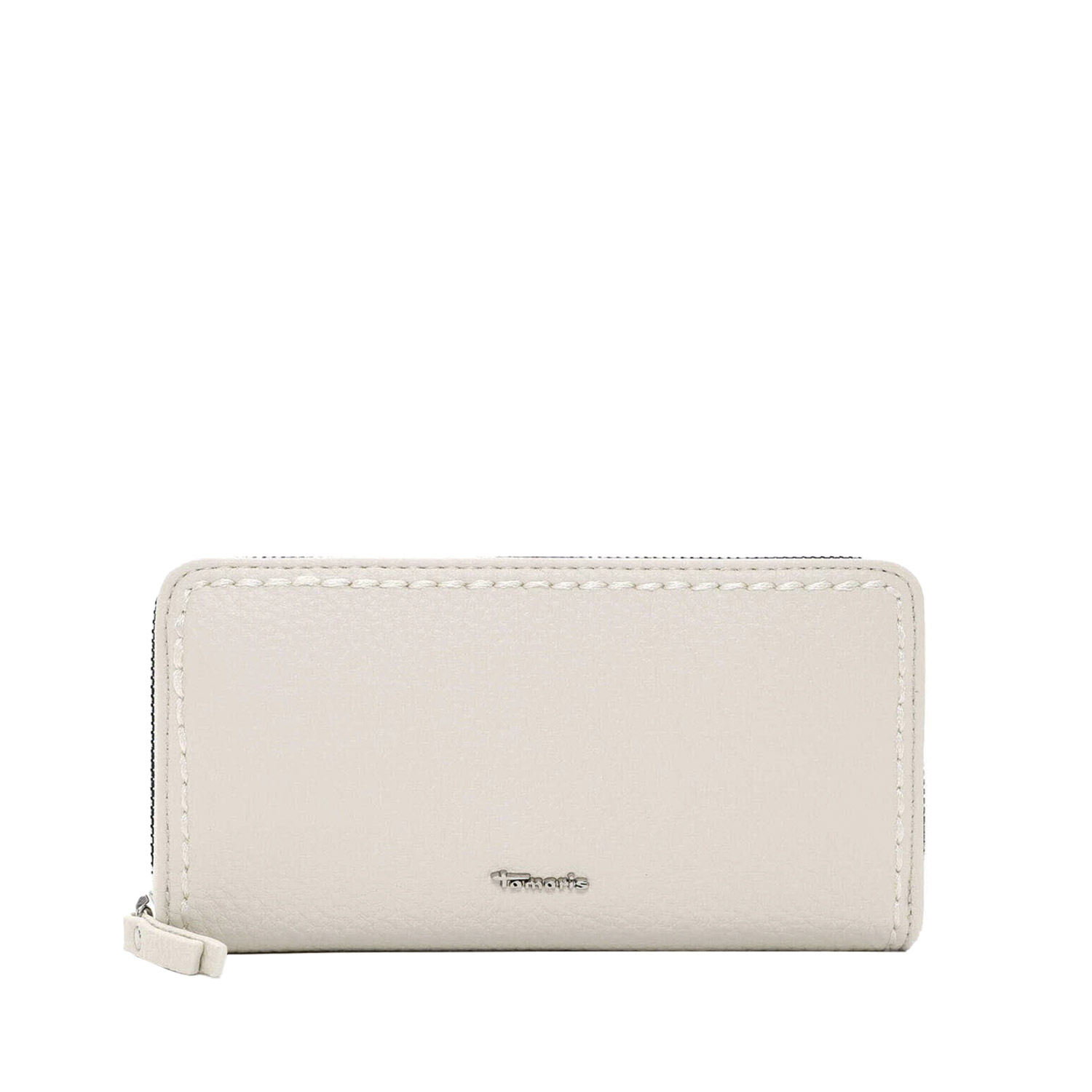 Tamaris γυναικείο πορτοφόλι, σε εκρού χρώμα, κατασκευασμένο από οικολογικό δέρμα. Ύψος 10εκ., Μήκος 20εκ.