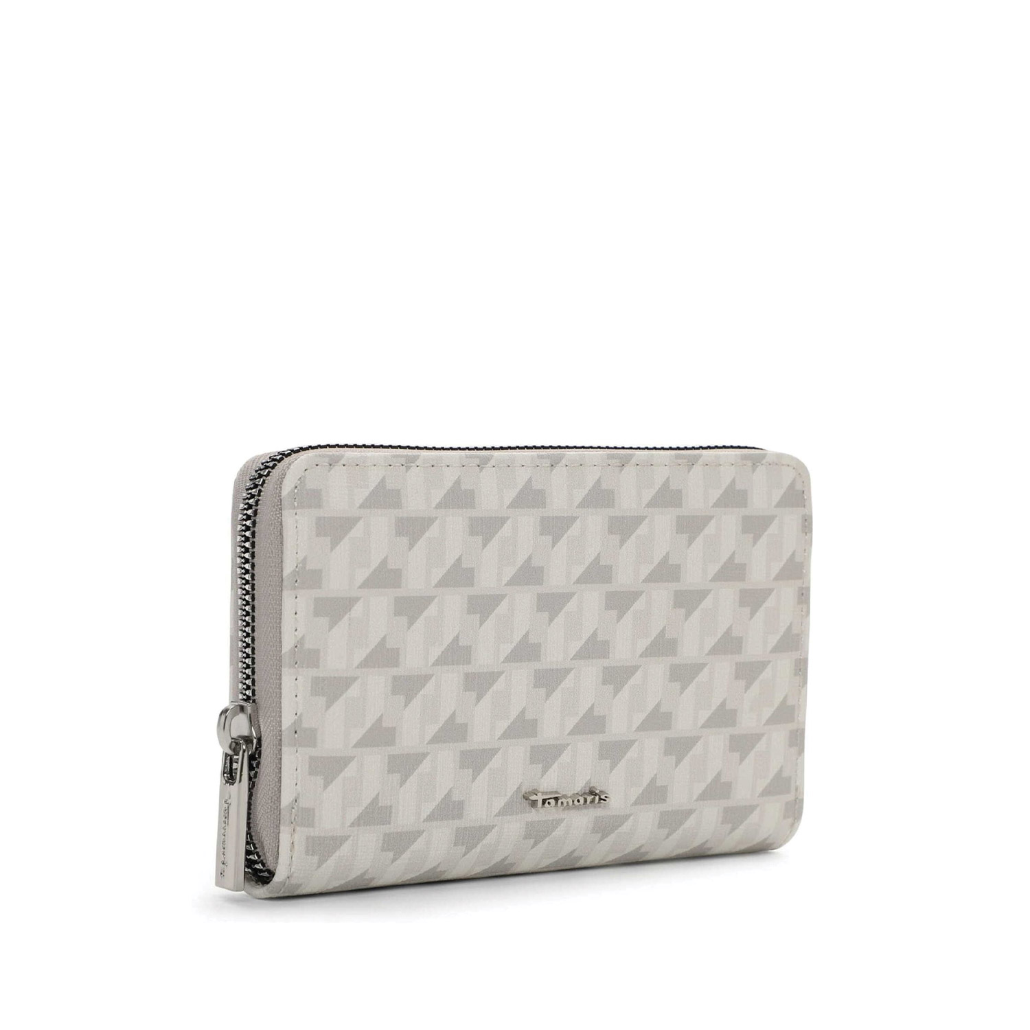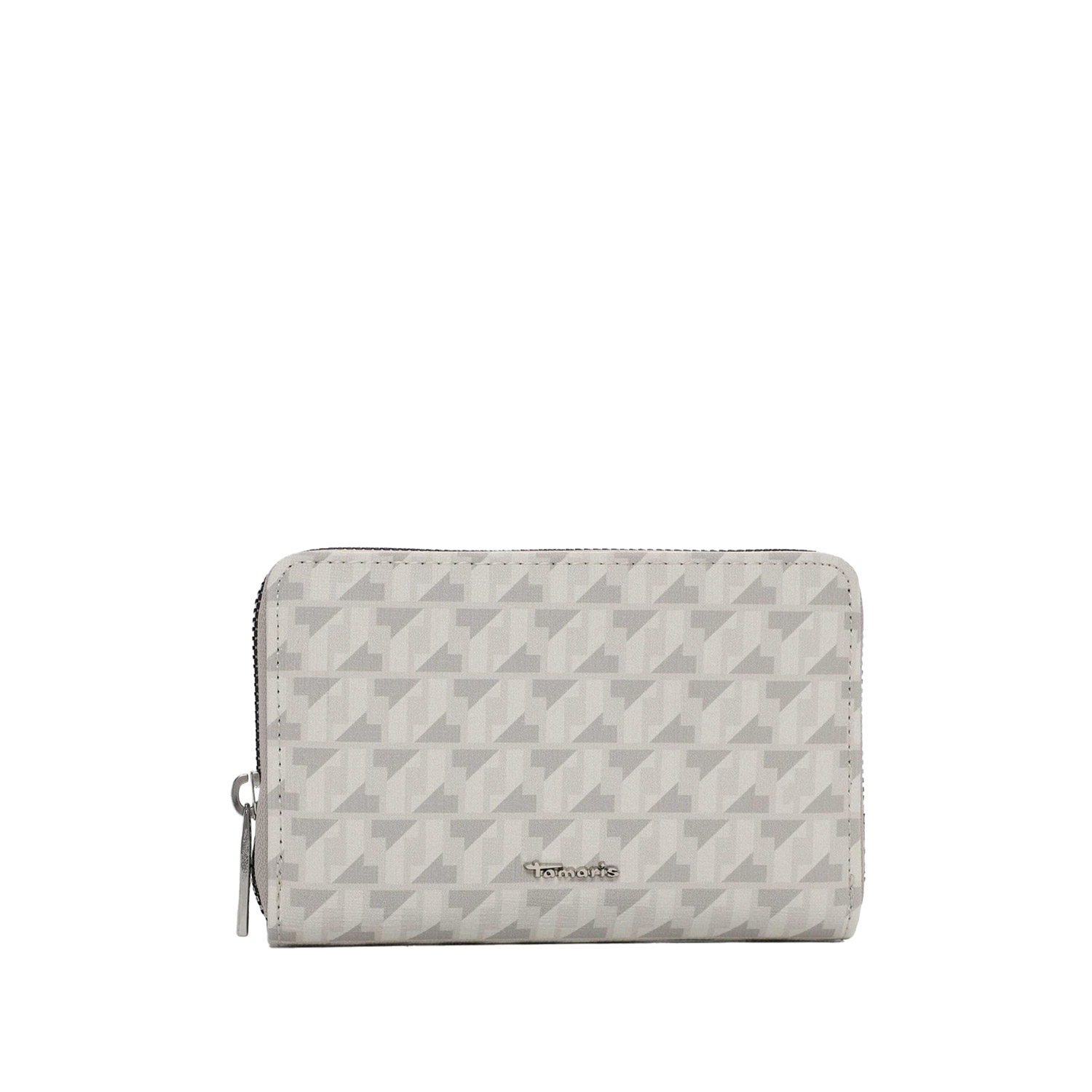 Tamaris γυναικείο πορτοφόλι, σε λευκό-γκρι χρώμα, κατασκευασμένο από οικολογικό δέρμα. Ύψος 10εκ., Μήκος 15.5εκ.