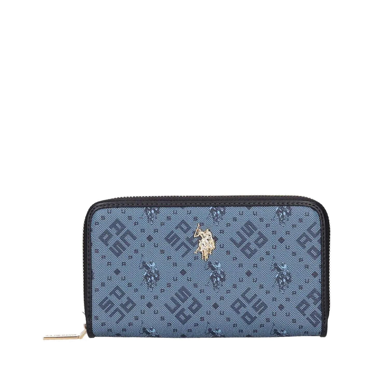 U.S. Polo ASSN γυναικείο πορτοφόλι, σε μπλε χρώμα, κατασκευασμένο από οικολογικό δέρμα. Ύψος 10εκ., Μήκος 19εκ.