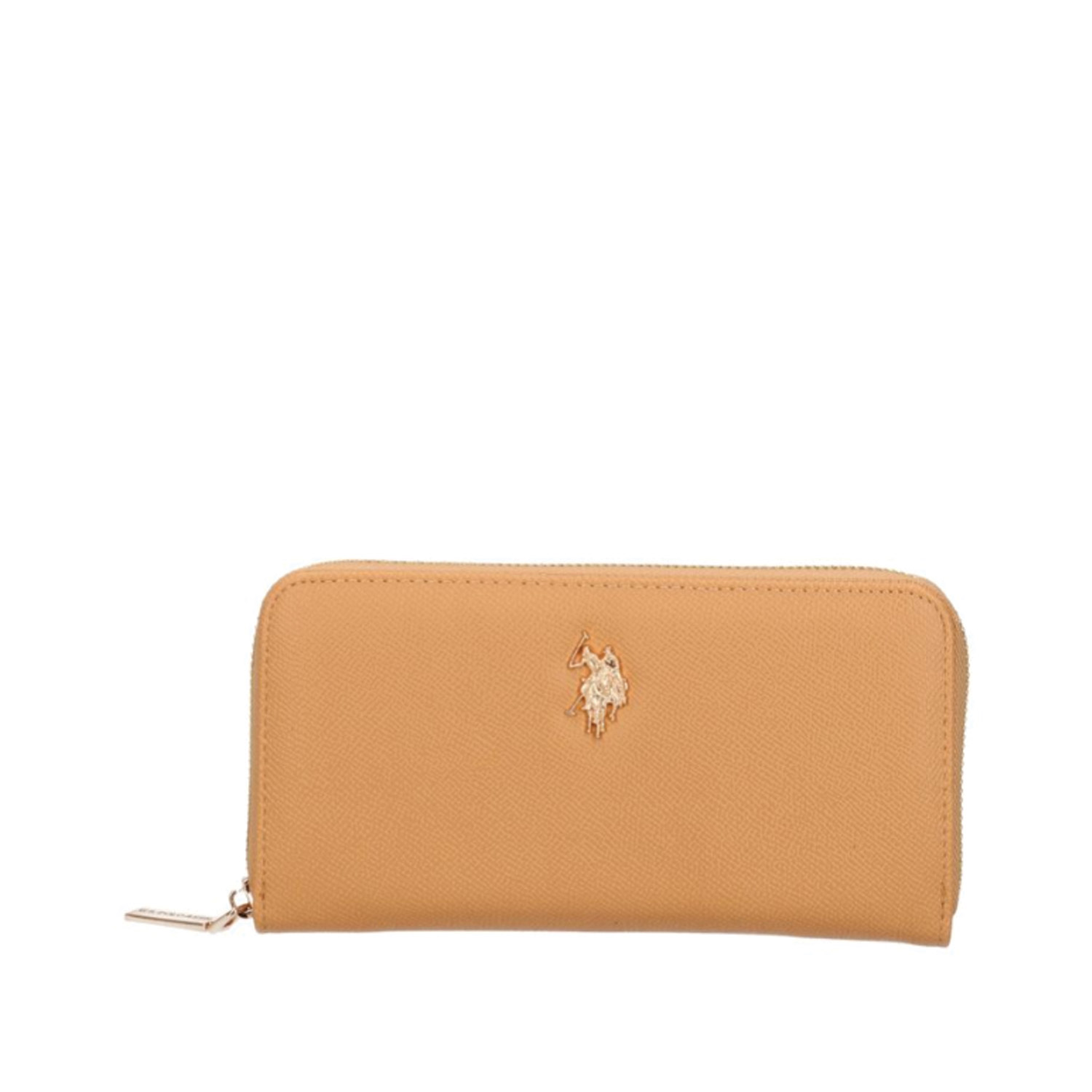 U.S. Polo ASSN γυναικείο πορτοφόλι, σε μπεζ χρώμα, κατασκευασμένο από οικολογικό δέρμα. Ύψος 10εκ., Μήκος 19εκ.