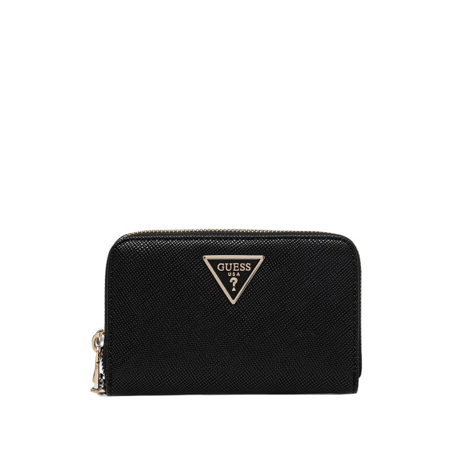 Guess γυναικείο πορτοφόλι, σε μαύρο χρώμα, κατασκευασμένο από οικολογικό δέρμα. Ύψος 9εκ., Μήκος 14εκ.