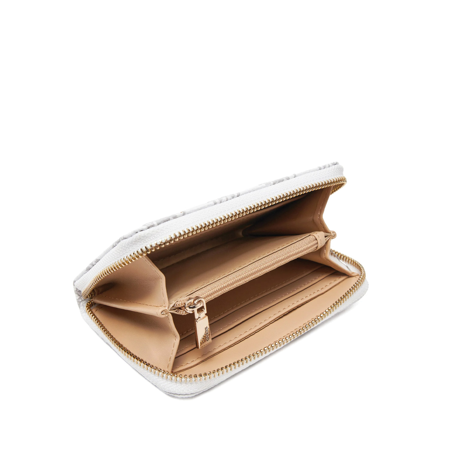 Guess γυναικείο πορτοφόλι, σε λευκό χρώμα, κατασκευασμένο από οικολογικό δέρμα. Ύψος 9εκ., Μήκος 14εκ.