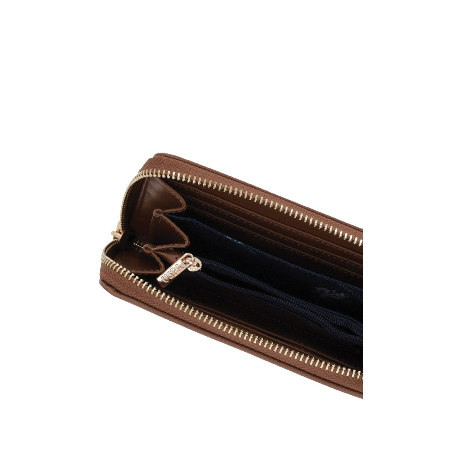 U.S. Polo ASSN γυναικείο πορτοφόλι, σε καφέ χρώμα, κατασκευασμένο από οικολογικό δέρμα. Ύψος 10εκ., Μήκος 13εκ.