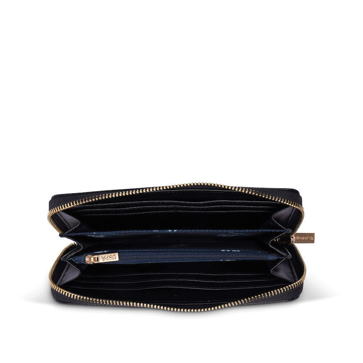 U.S. Polo ASSN γυναικείο πορτοφόλι, σε μαύρο χρώμα, κατασκευασμένο από οικολογικό δέρμα. Ύψος 10εκ.,Μήκος 20εκ.