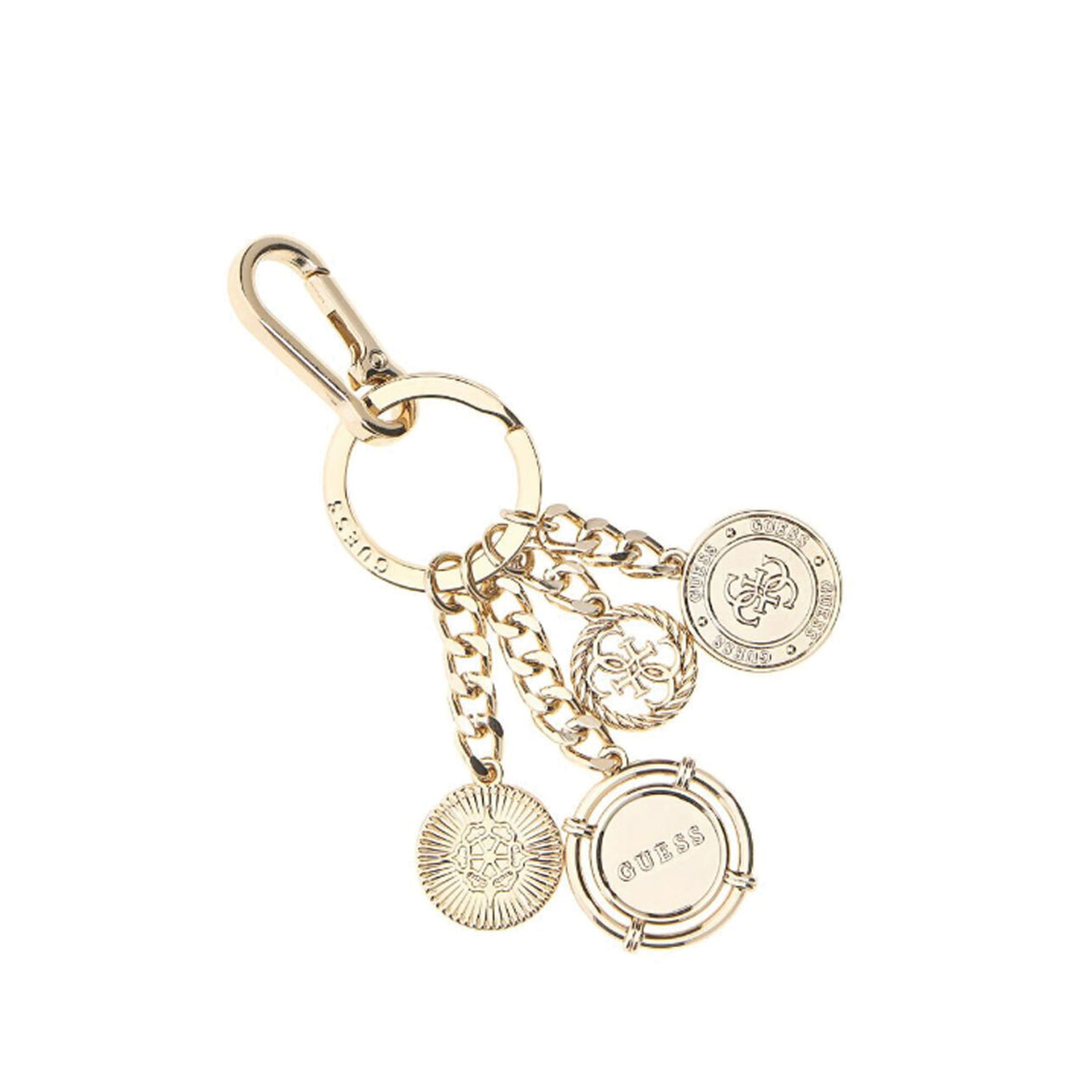 Μπρελόκ από την εταιρεία Guess σε χρυσή απόχρωση με σχέδια του λογότυπου της εταιρείας. Μπορεί να χρησιμοποιηθεί στα κλειδιά σας ή ως charm για να διακοσμήσετε την τσάντα σας.