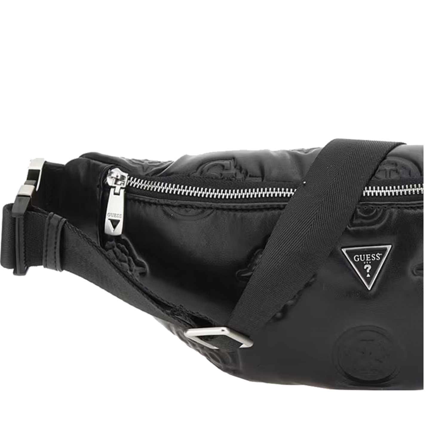 Guess ανδρική τσάντα μέσης, σε μαύρο χρώμα, κατασκευασμένη από οικολογικό δέρμα. Ύψος 18εκ., Μήκος 42εκ.