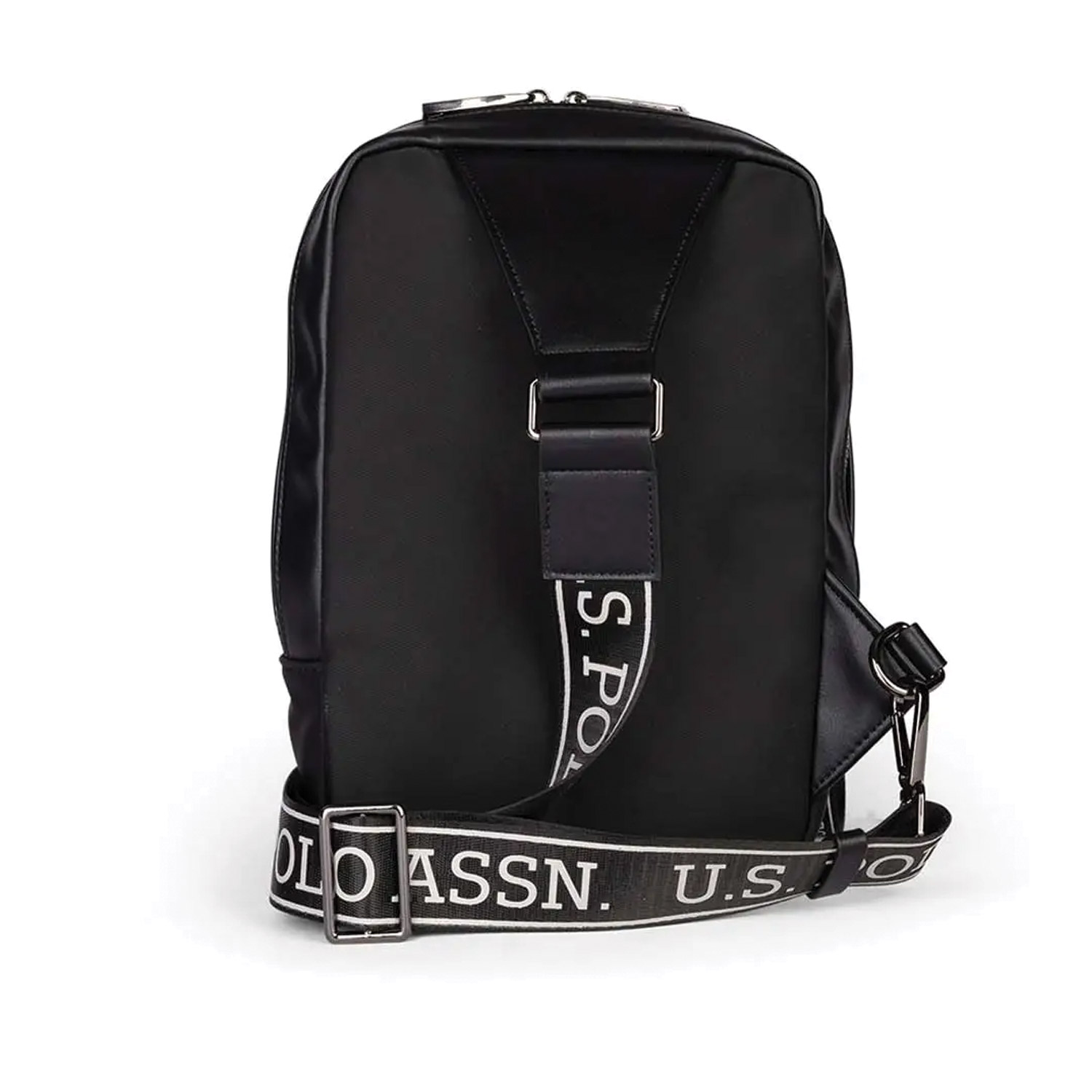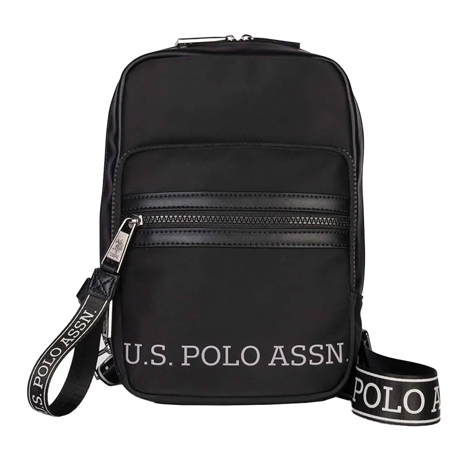 U.S. Polo ASSN. ανδρική τσάντα χιαστή, σε μαύρο χρώμα, κατασκευασμένη από οικολογικό δέρμα.