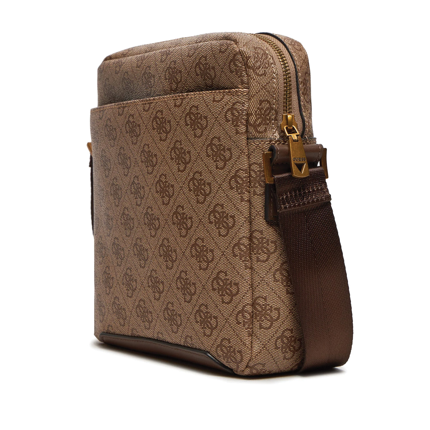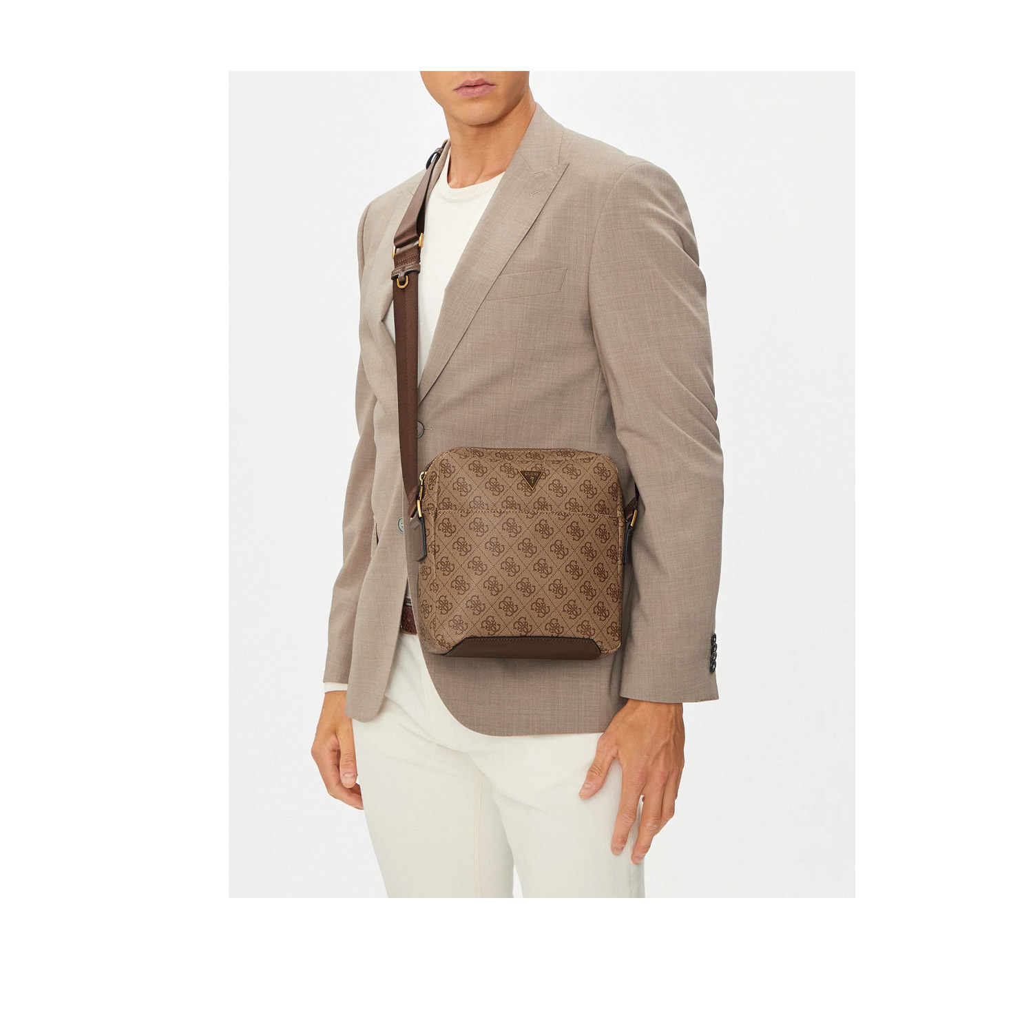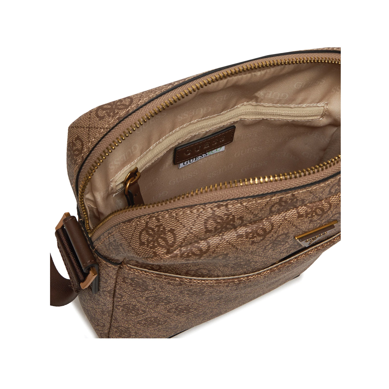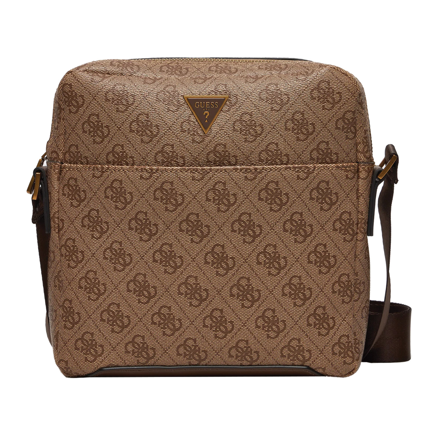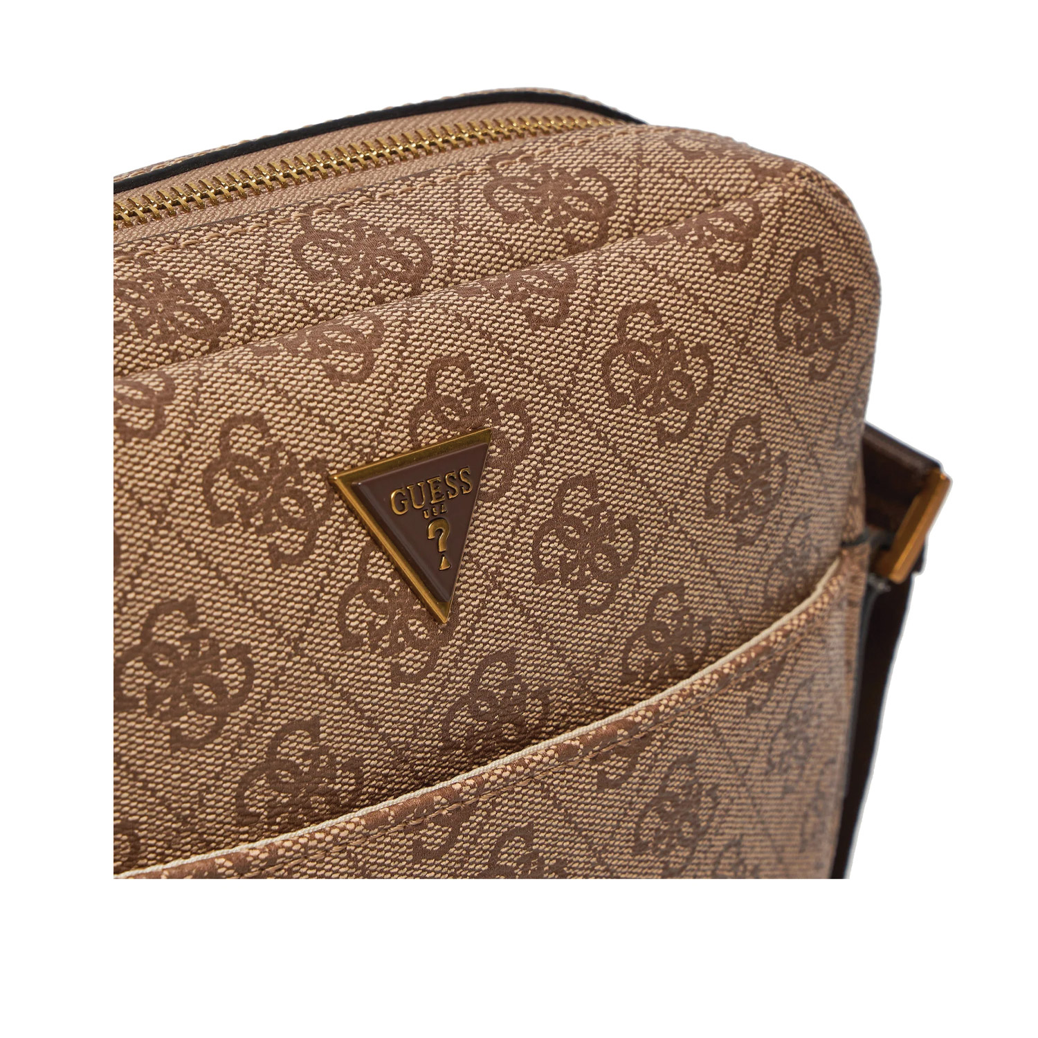 Guess ανδρική τσάντα χιαστή, σε μπεζ χρώμα, κατασκευασμένη από οικολογικό δέρμα. Ύψος 23.5εκ., Μήκος 22εκ.