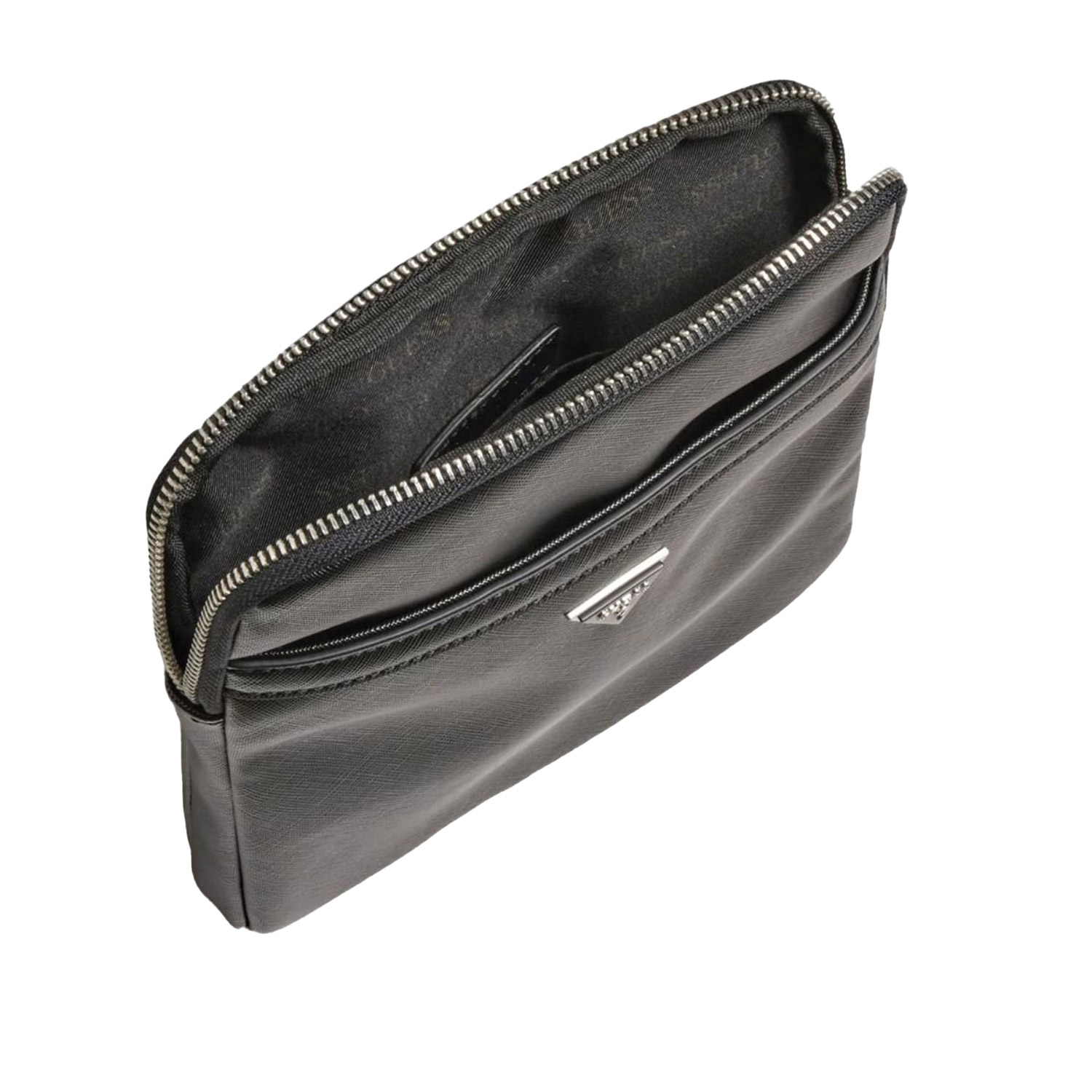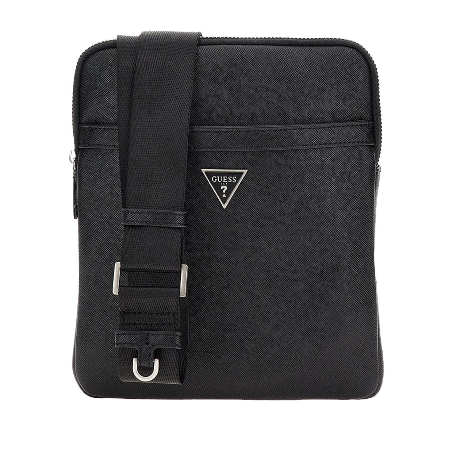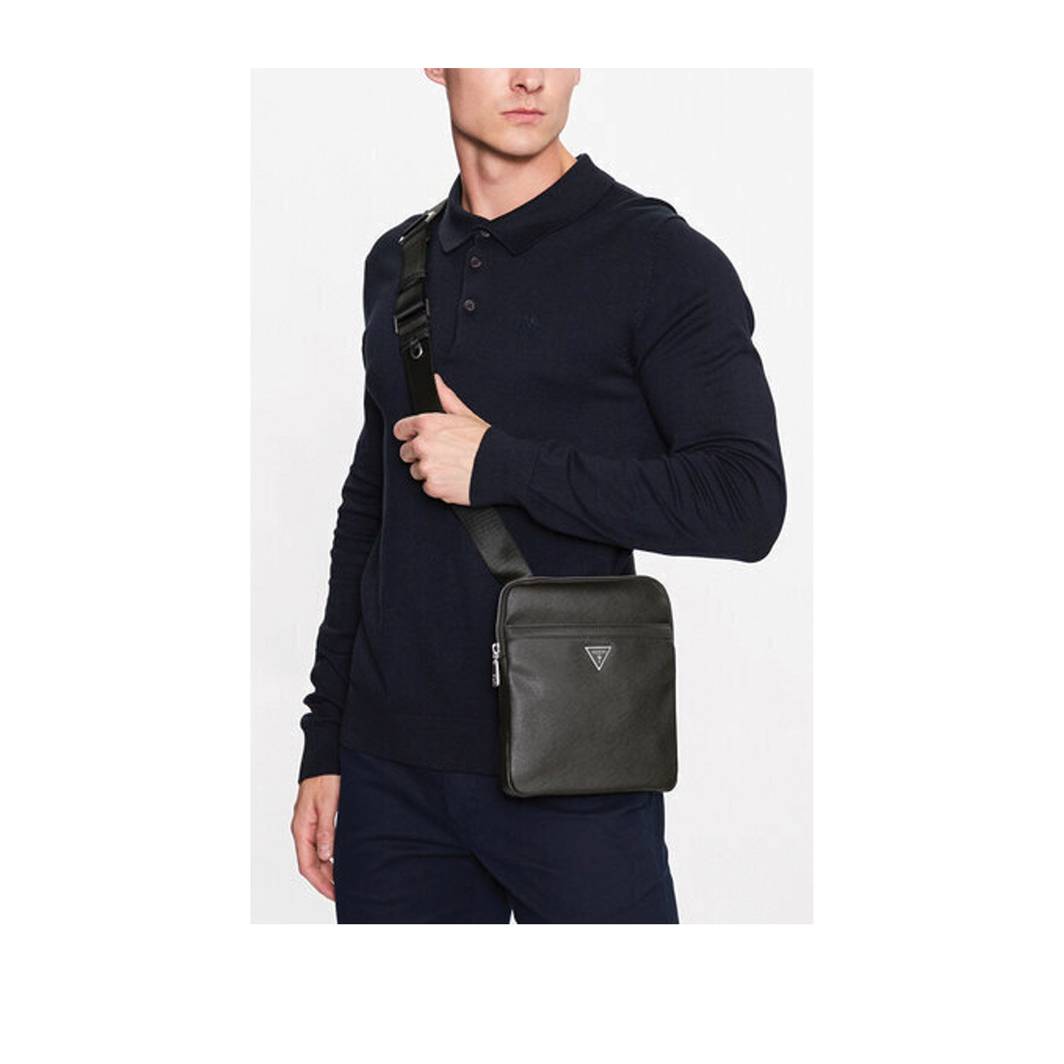 Guess ανδρική τσάντα χιαστή, σε μαύρο χρώμα, κατασκευασμένη από οικολογικό δέρμα. Ύψος 19εκ., Μήκος 14εκ.