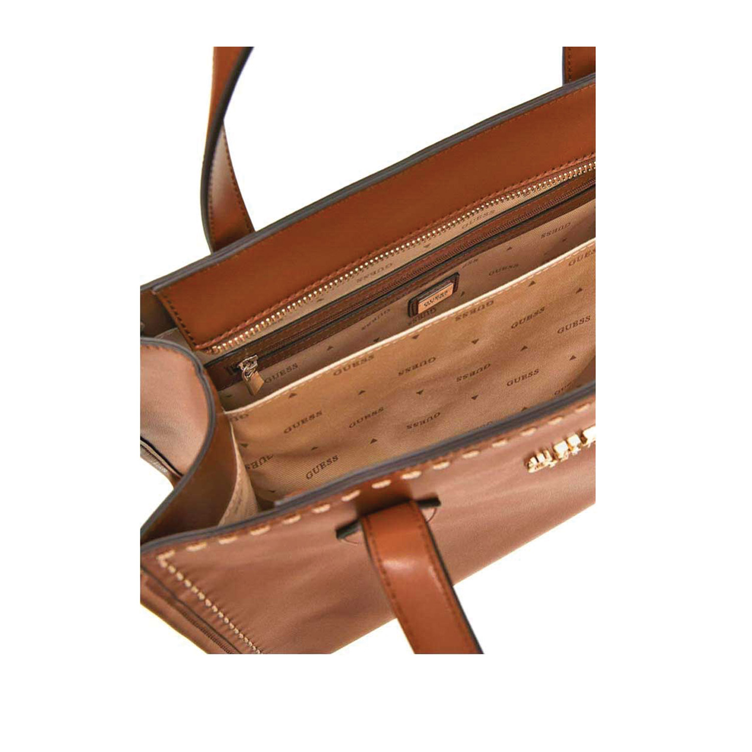 Guess Γυναικεία τσάντα ώμου, σε ταμπά χρώμα, κατασκευασμένη από οικολογικό δέρμα. Ύψος 26εκ., Μήκος 34εκ.