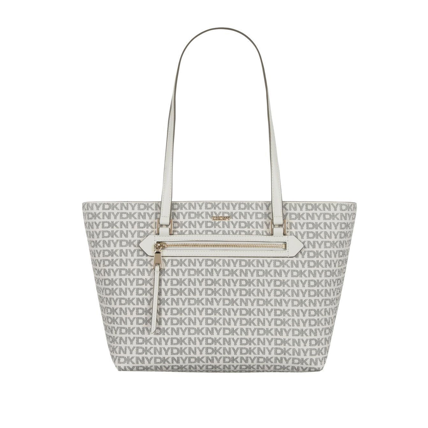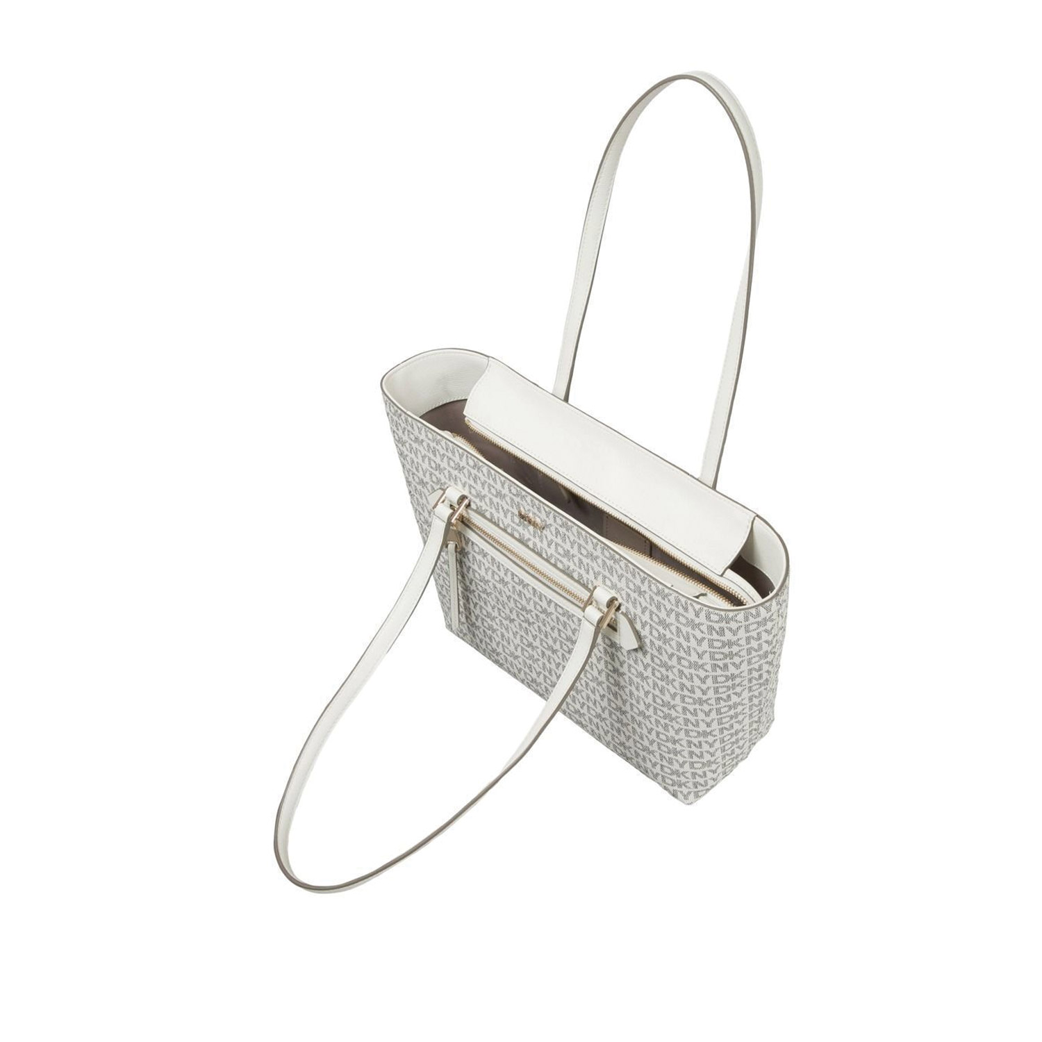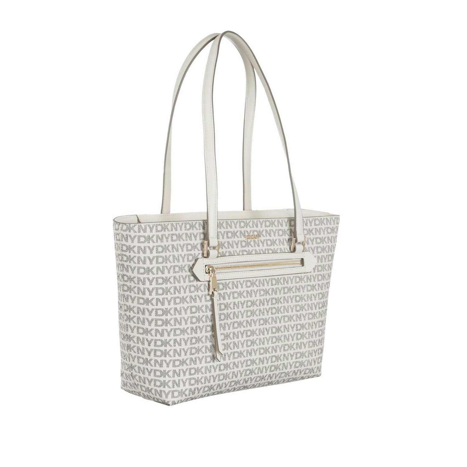 DKNY γυναικεία τσάντα ώμου, σε λευκό χρώμα, κατασκευασμένη από οικολογικό δέρμα. Ύψος 24εκ., Μήκος 40εκ.