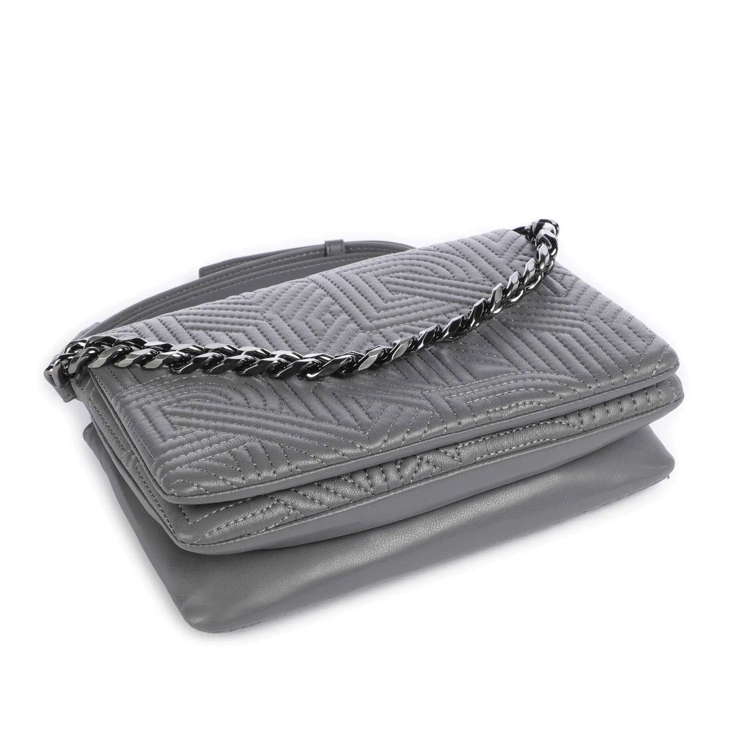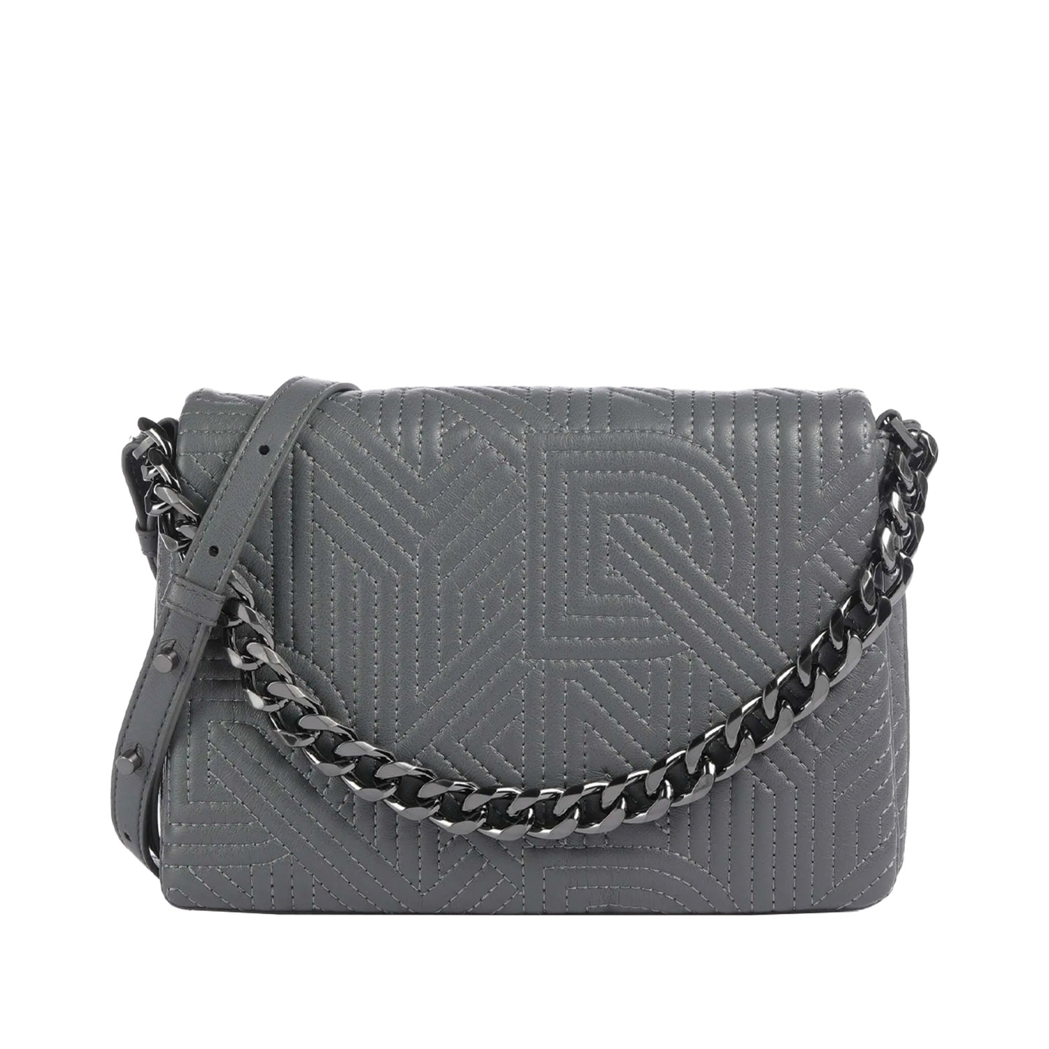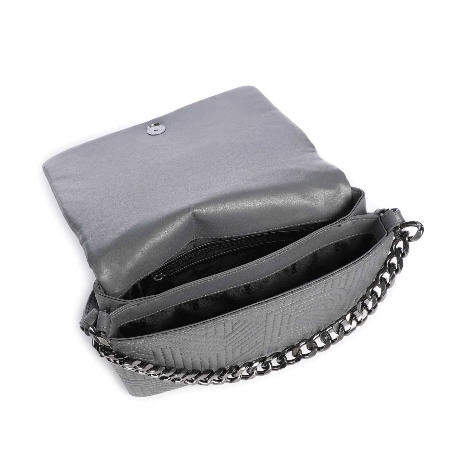 DKNY γυναικεία τσάντα χιαστή, σε γκρι χρώμα, κατασκευασμένη από οικολογικό δέρμα. Ύψος 14εκ., Μήκος 19εκ.