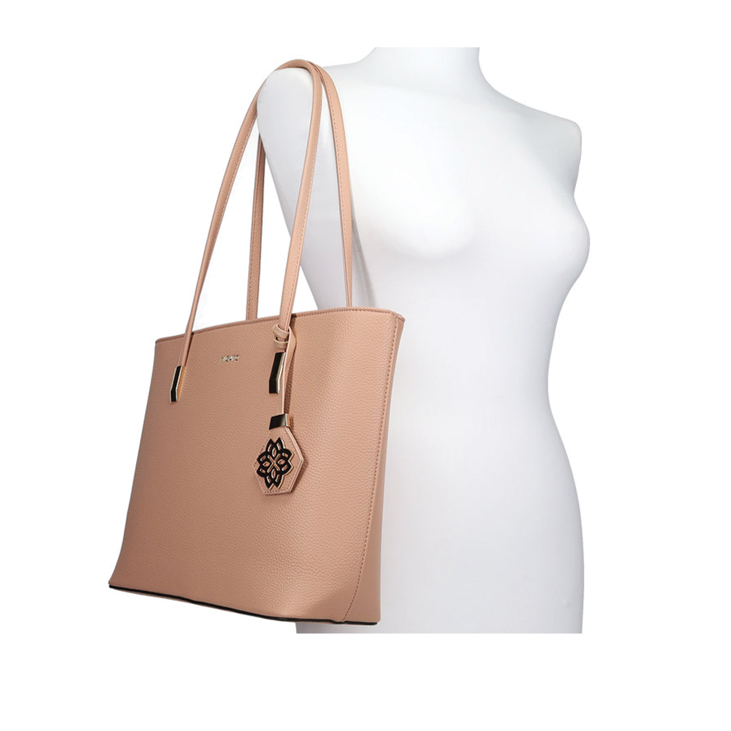 Nude τσάντα ώμου. Διαθέτει διακοσμητικό charm. Κλείνει με φερμουάρ.