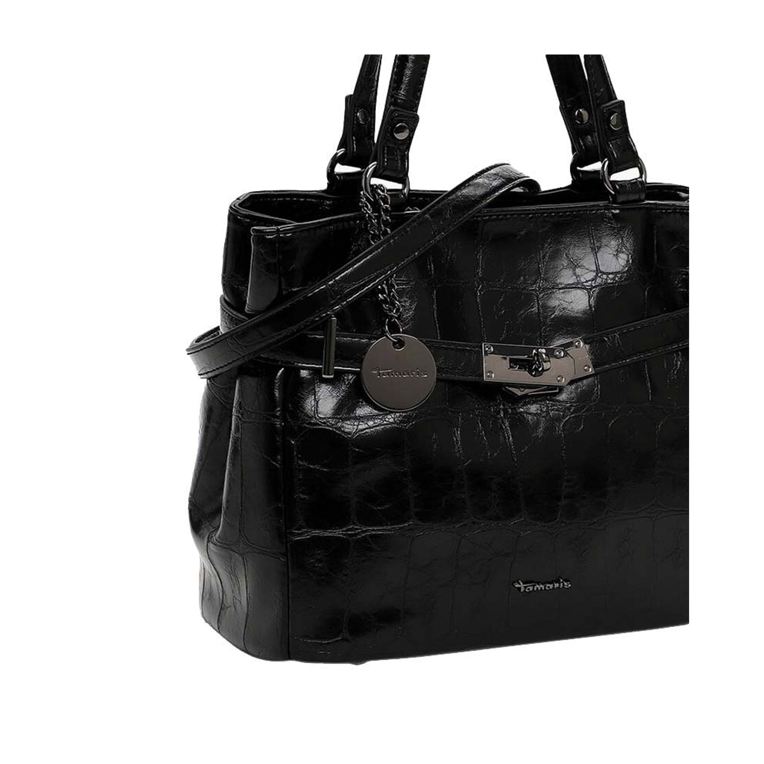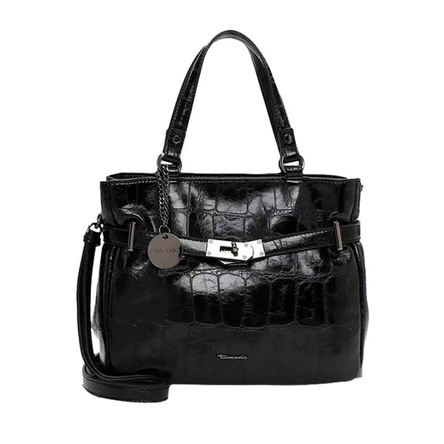 Tamaris γυναικεία τσάντα ώμου, σε μαύρο χρώμα, κατασκευασμένη από οικολογικό δέρμα. Ύψος 29εκ., Μήκος 45εκ.