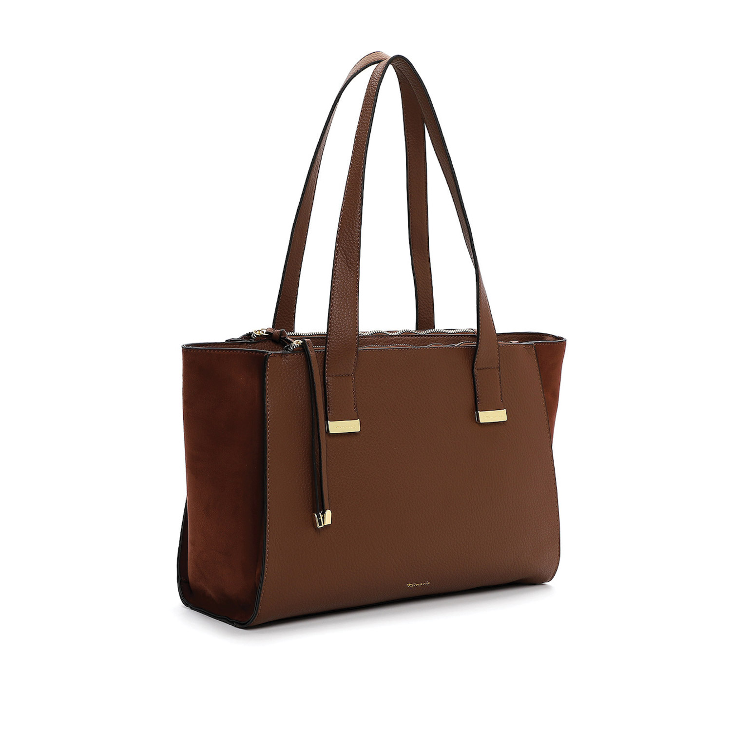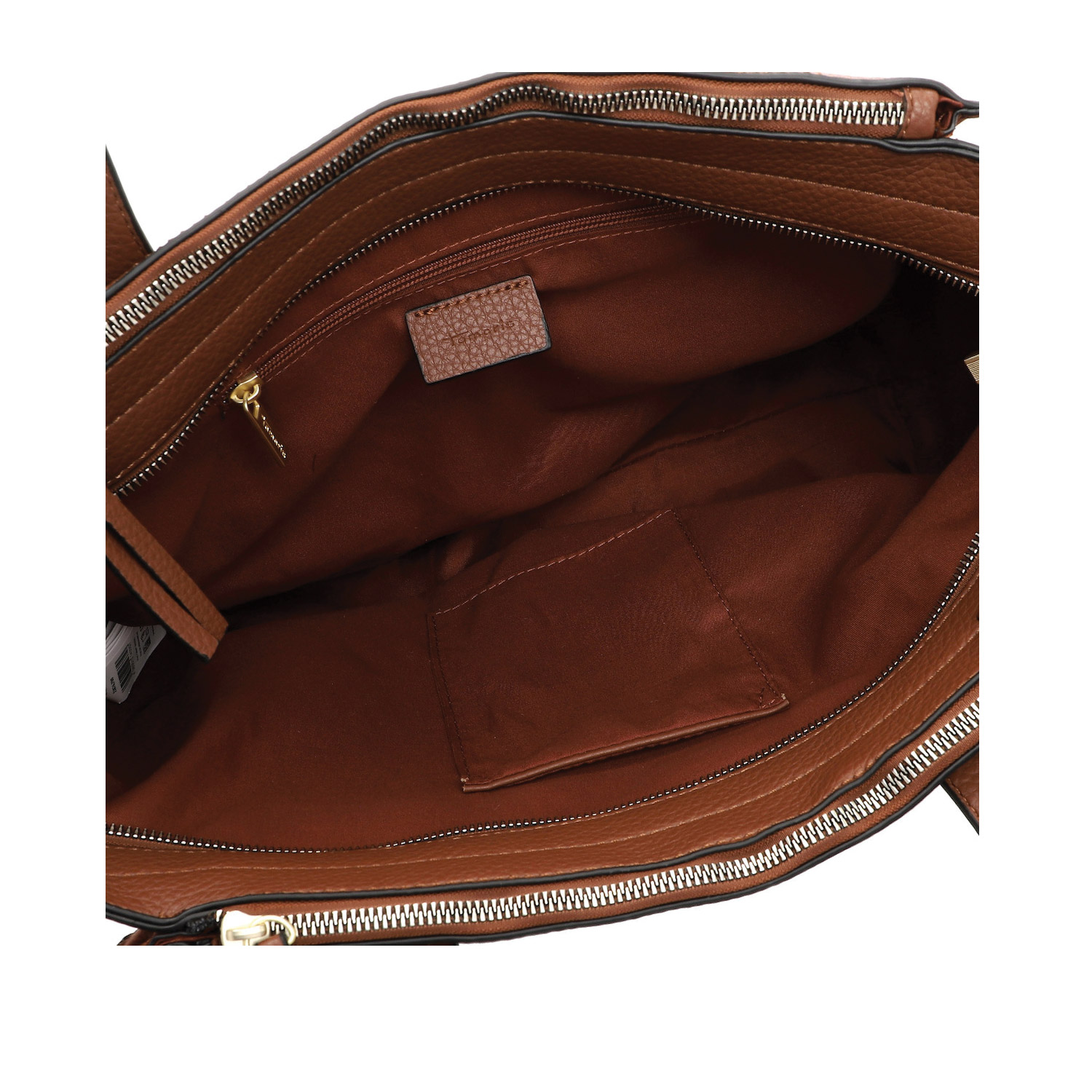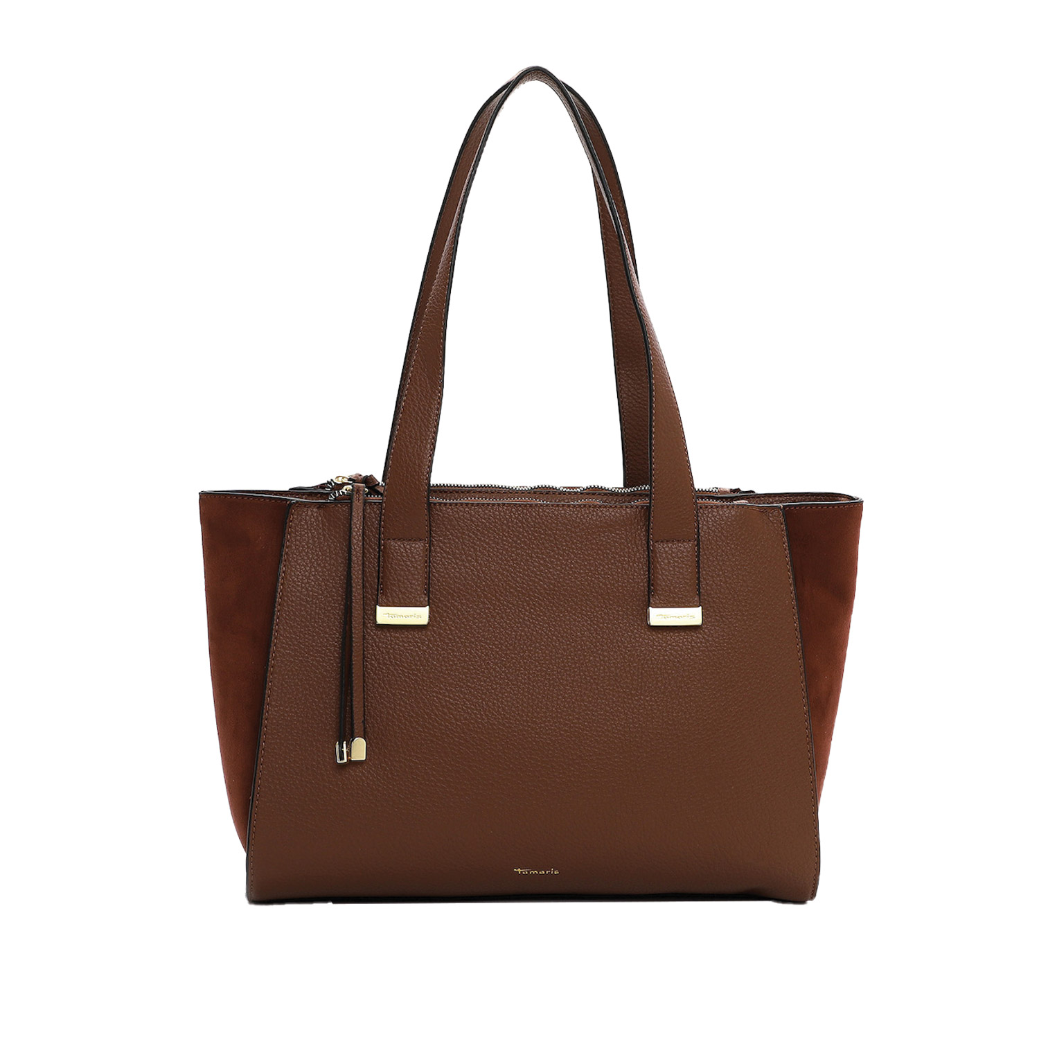 Tamaris γυναικεία τσάντα ώμου, σε ταμπά χρώμα, κατασκευασμένη από οικολογικό δέρμα. Ύψος 29εκ., Μήκος 47εκ.
