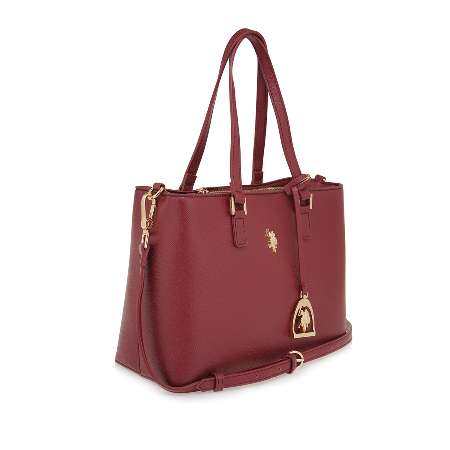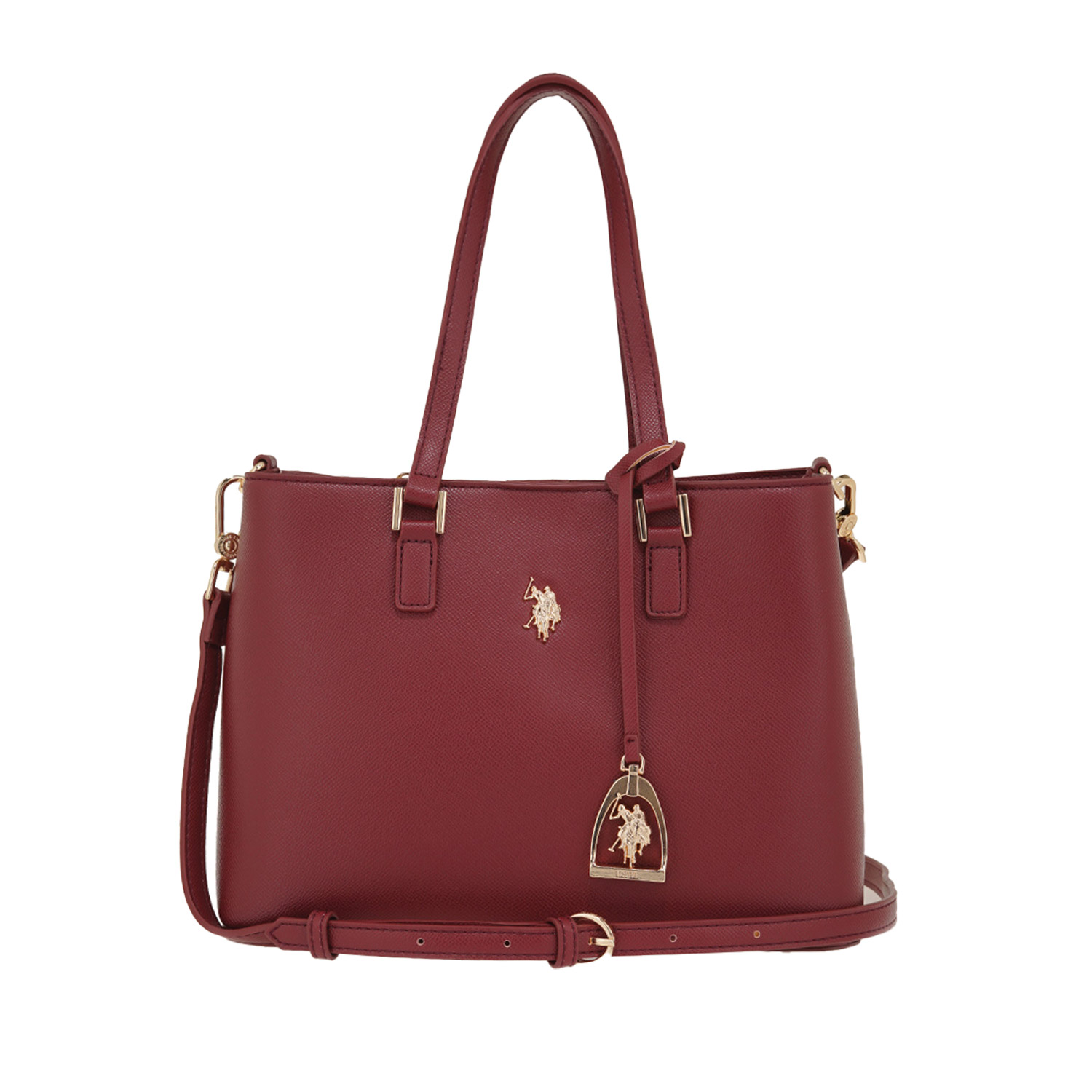 U.S. Polo ASSN γυναικεία τσάντα ώμου, σε μπορντώ-κόκκινο χρώμα, κατασκευασμένη από οικολογικό δέρμα. Ύψος 30εκ., Μήκος 31εκ.