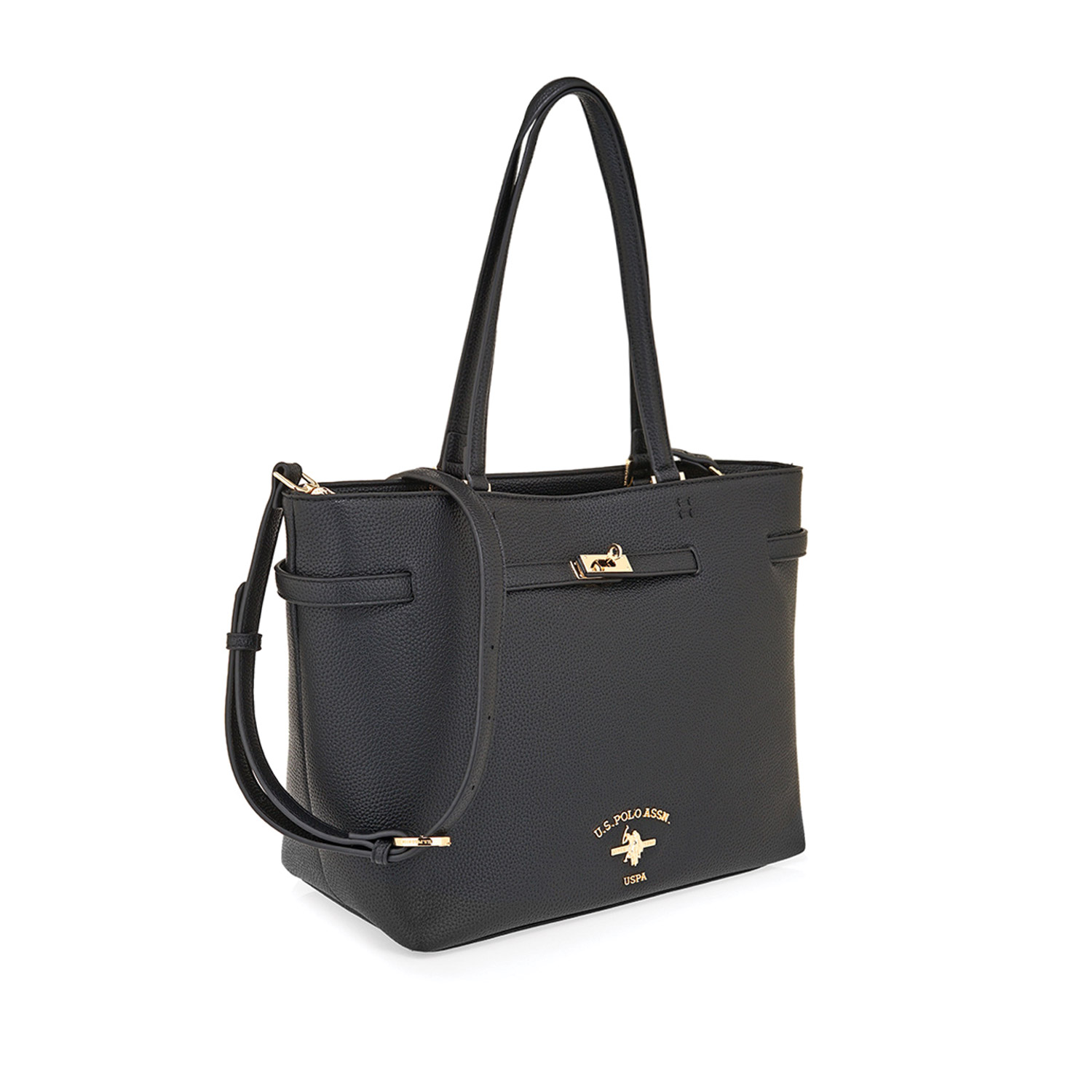 U.S. Polo ASSN γυναικεία τσάντα ώμου, σε μαύρο χρώμα, κατασκευασμένη από οικολογικό δέρμα. Ύψος 29εκ., Μήκος 38εκ.