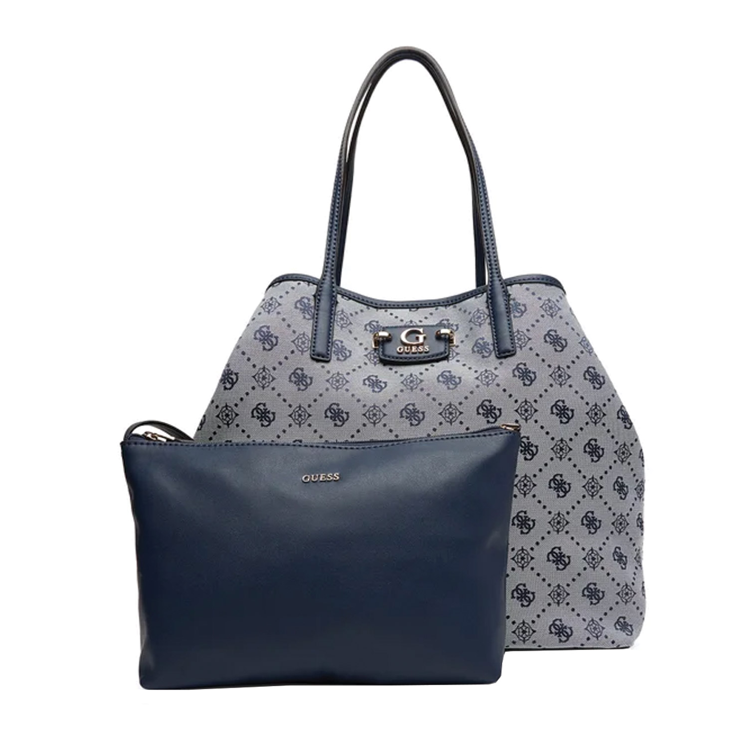 Guess γυναικεία τσάντα ώμου, σε navy χρώμα, κατασκευασμένη από οικολογικό δέρμα. Ύψος 34εκ., Μήκος 40εκ.