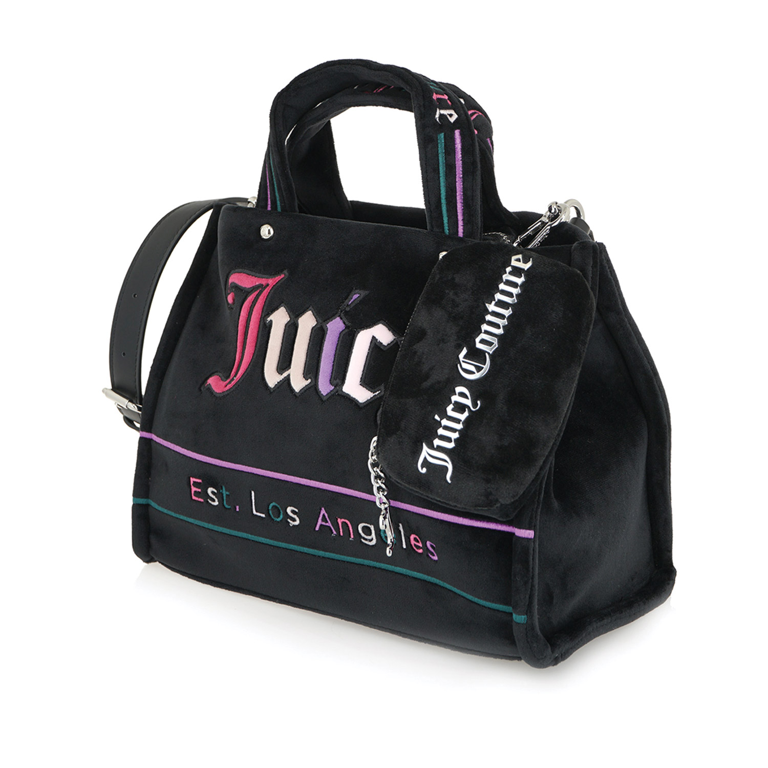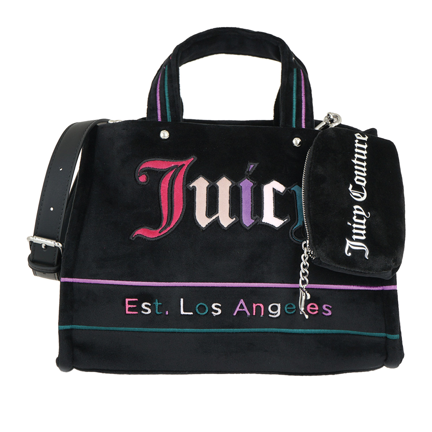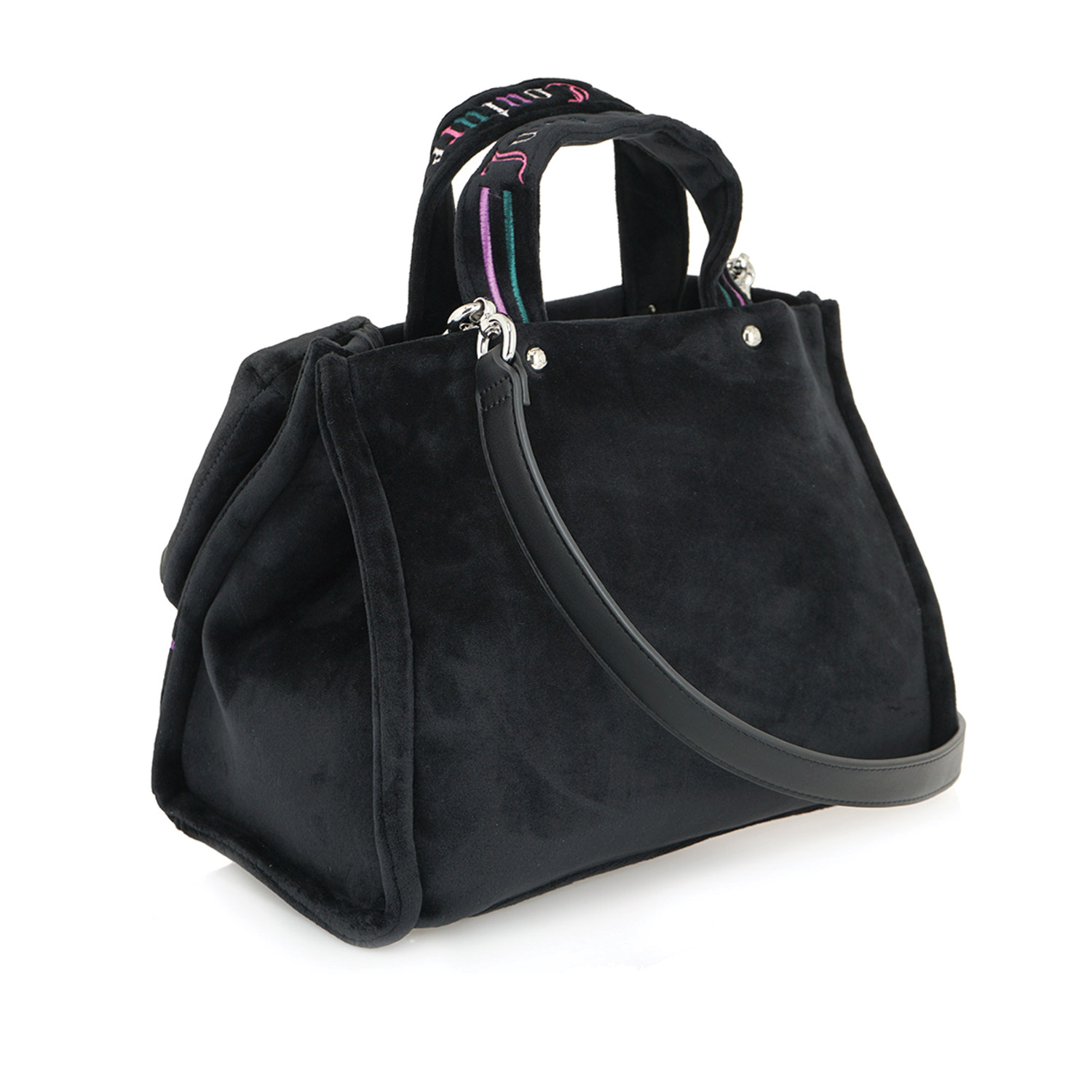 Juicy Couture γυναικεία τσάντα χειρός, σε μαύρο χρώμα, κατασκευασμένη από βελούδο. Ύψος 24εκ., Μήκος 32εκ.